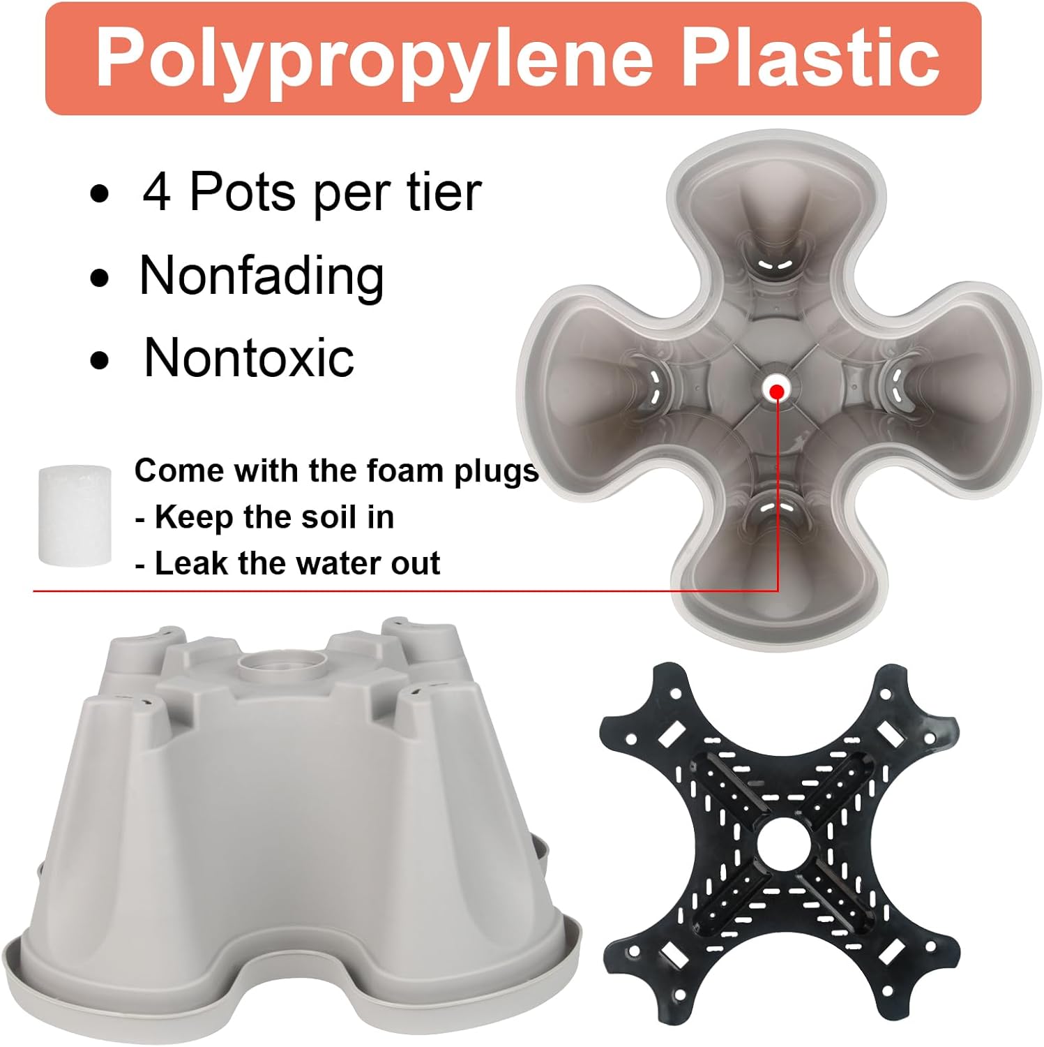 Vertical Planter 5 Tier Stackable Planters Garden Planters Strawberry Herb Flower and Vegetable Planter Indoor Outdoor Gardening Pots with Removable Wheels and Tools