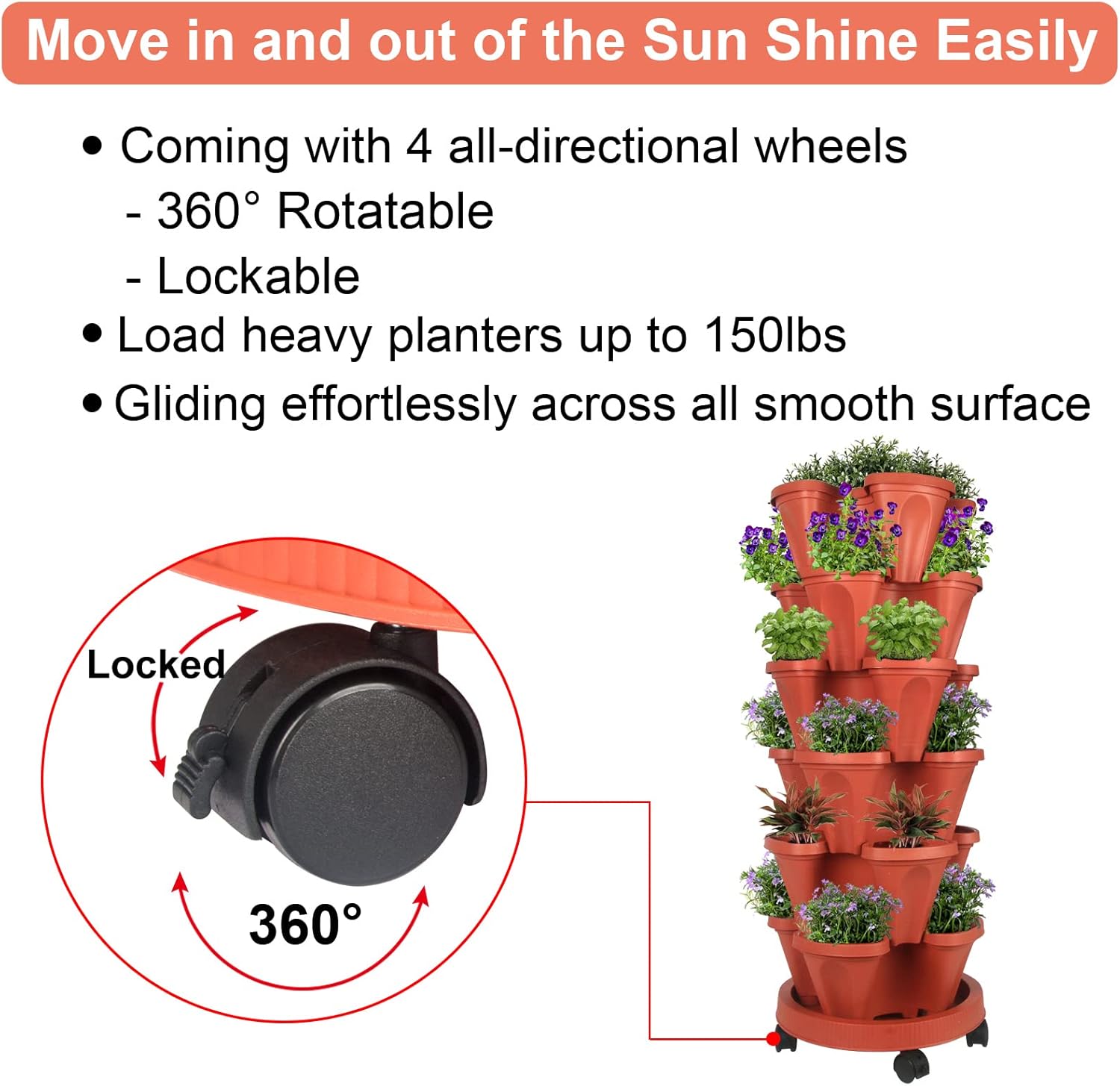 Vertical Planter 6 Tier Stackable Planters Garden Planters Strawberry Herb Flower and Vegetable Planter Indoor Outdoor Gardening Pots with Removable Wheels and Tools 2-Pack