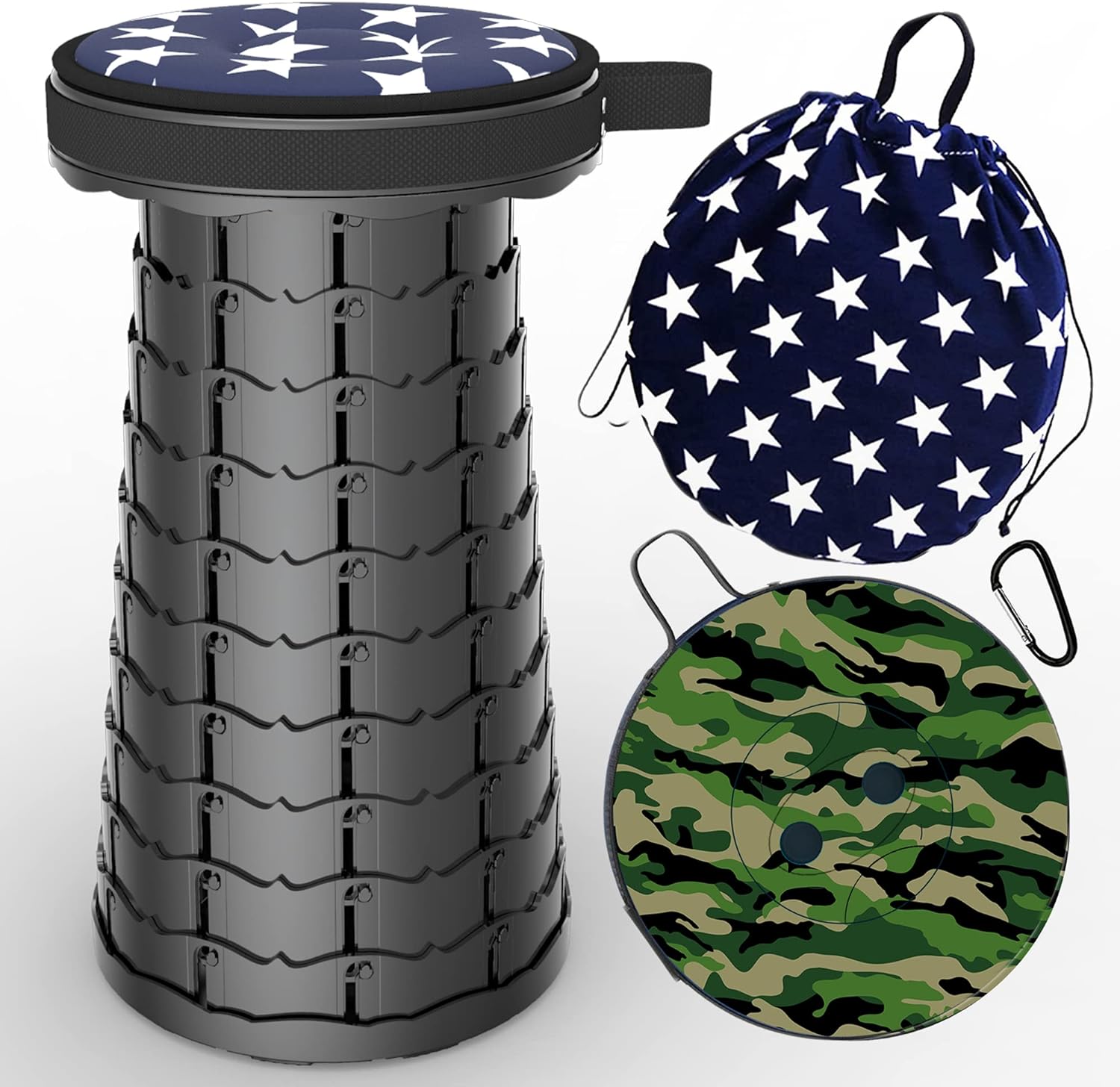 ALEVMOOM Upgraded Telescoping Collapsible Stool with Cushion, Folding Stool with Printing Portable Retractable Foldable Seat Max Load 550lbs for Adults Camping Fishing Outdoor