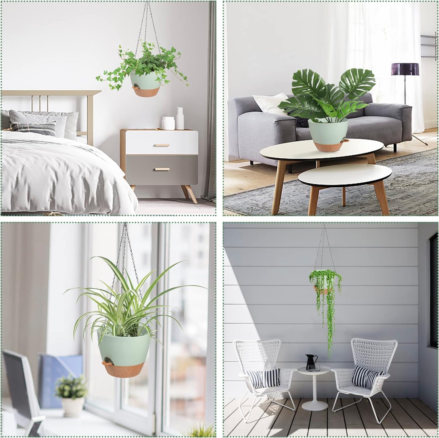 - Drainage Holes - The hanging planter multiple drainage holes can help you avoid over-watering and release excess water. Separate the potting soil from the water surface, enter the water through cotton rope perforations to keep the soil moist and the roots healthy. Self watering flower pots provides the best amount of water for your plants.