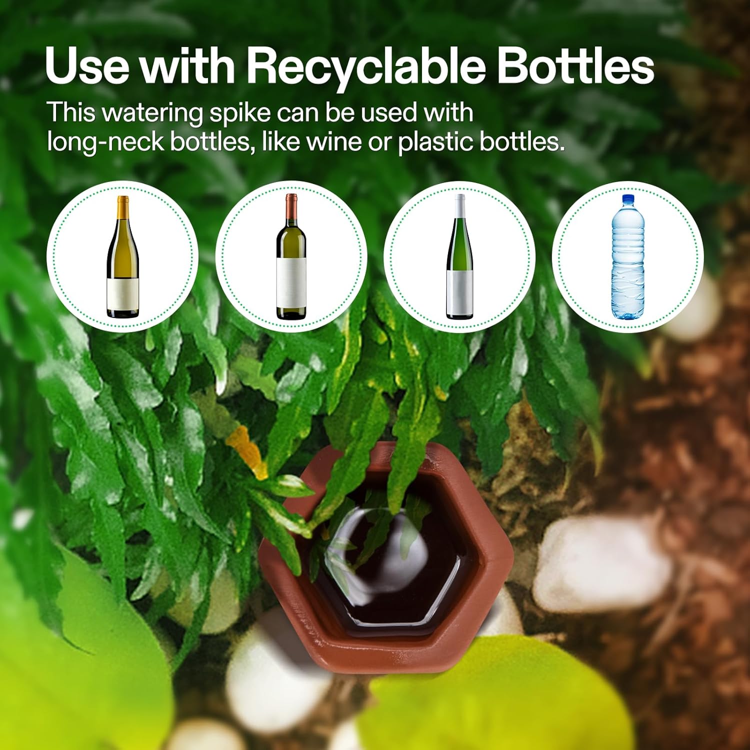 - Easy to Use: First, soak the clay watering spike in water for about 15 minutes, then install it on a water bottle filled with water; next insert the watering spike into the soil at least three-quarters of the way to achieve an automatic irrigation; It can be used with long-necked bottle, such as wine bottles or plastic bottles