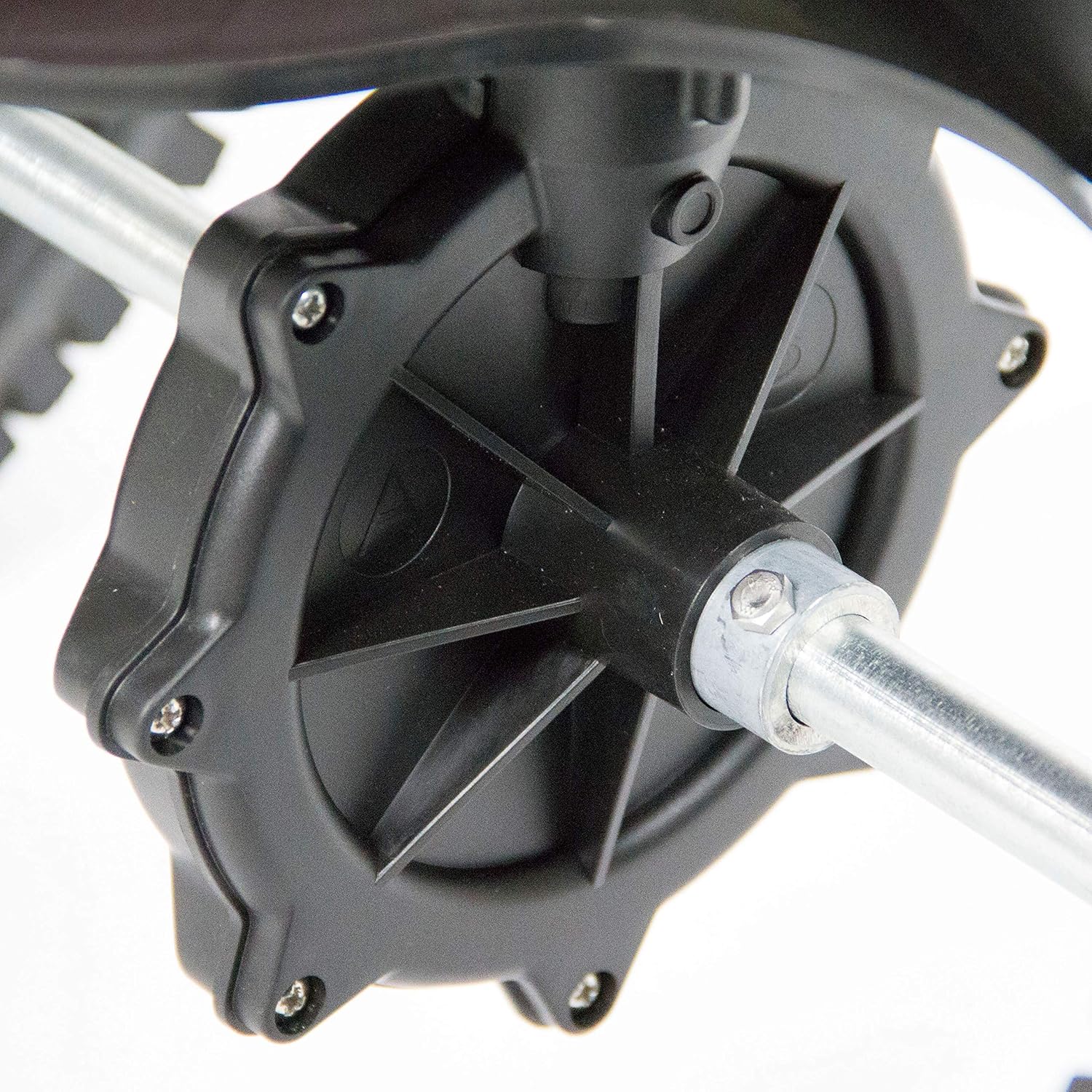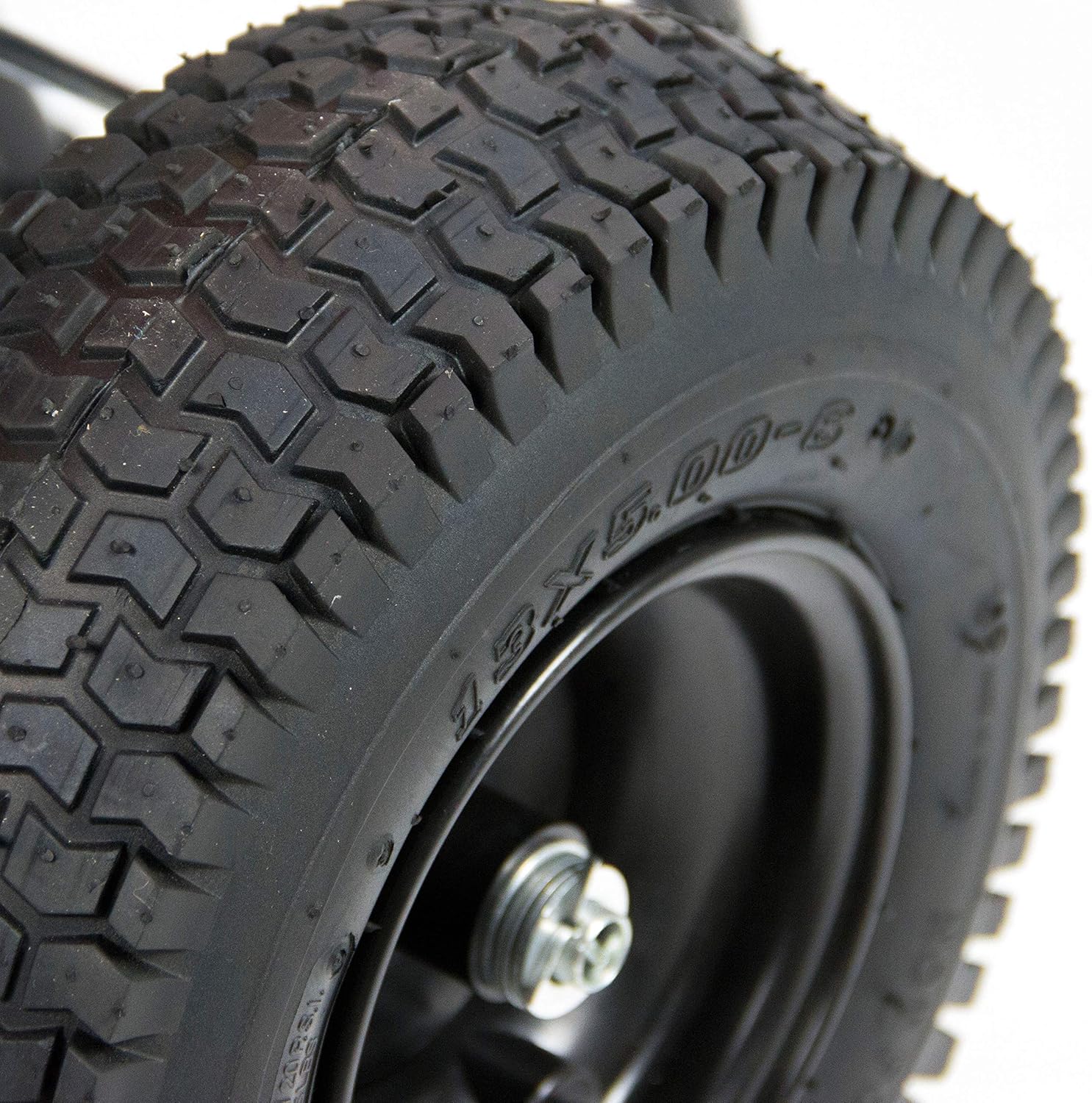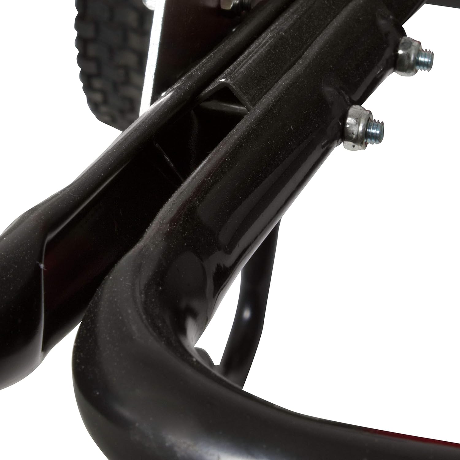 - TIRES AND ACCESSORIES: 12-inch pneumatic, wide-tread tires move over uneven ground; rain/snow cover and grate included