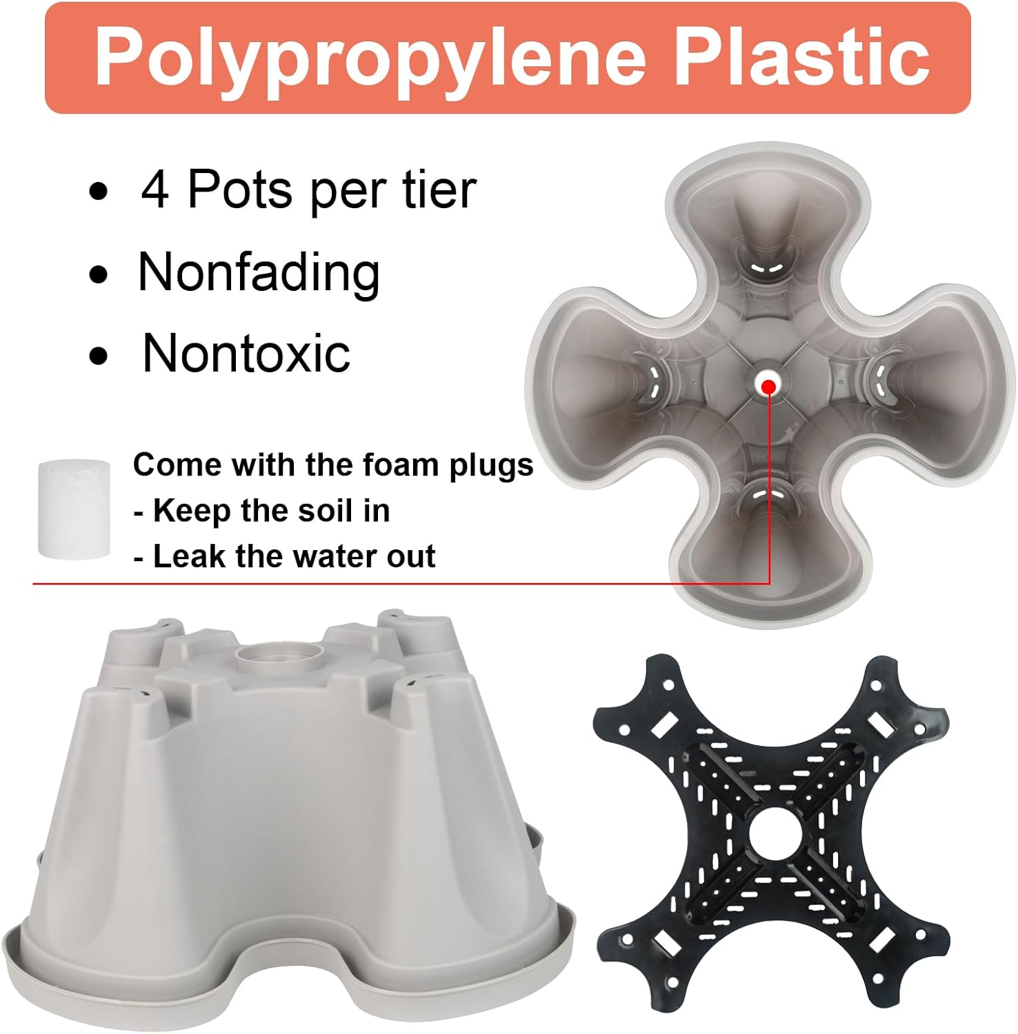 Vertical Planter 7 Tier Stackable Planters Garden Planters Strawberry Herb Flower and Vegetable Planter Indoor Outdoor Gardening Pots with Removable Wheels and Tools