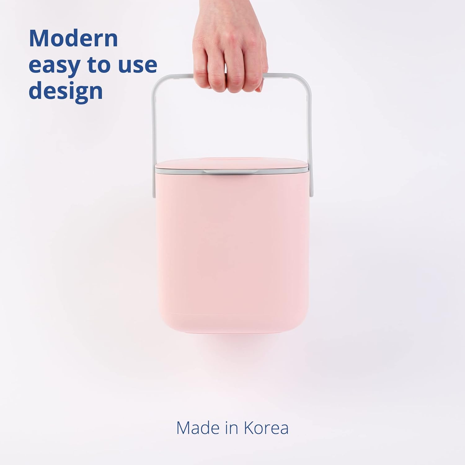 BLUE GINKGO Kitchen Compost Bin [2.6L / 0.69 GAL] – Filter-Free, Odor-Tight Countertop Food Waste Pail with Handles (Made in Korea, Pink)