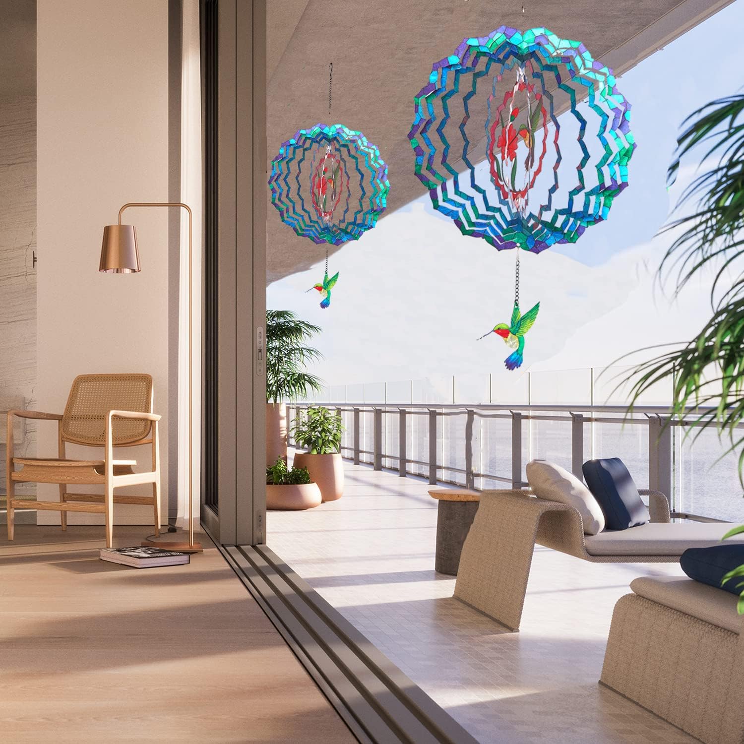 - EYE CATCHING DECORATIONS - The 12 inch hummingbird wind spinner is the right size to decorate your patio, gallery, porch, bedroom, living room, lawn, garden, balcony, yard, and trees. Suitable for indoor and outdoor use. A great addition to your home decor.