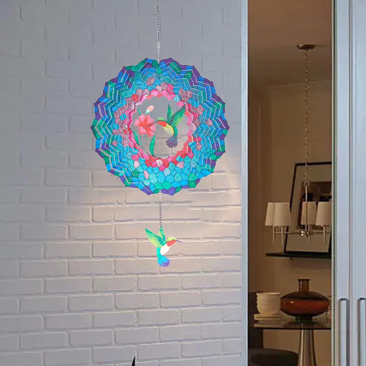 - EASY TO OPEN - Hummingbird art hanging wind spinner is flat when taken out of the package, and its special structure can be rotated by hand to form 3D shapes.