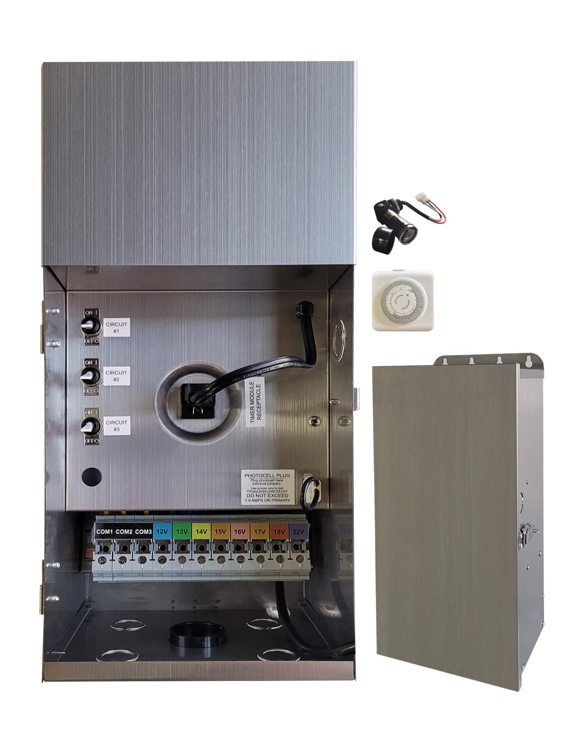 - Work with Timer & Sensor:Timer & photocell port available,packge with mechanical timer and photocell sensor for sensing and timing functions. You also can connect the transformer in your smart plug remote control it.