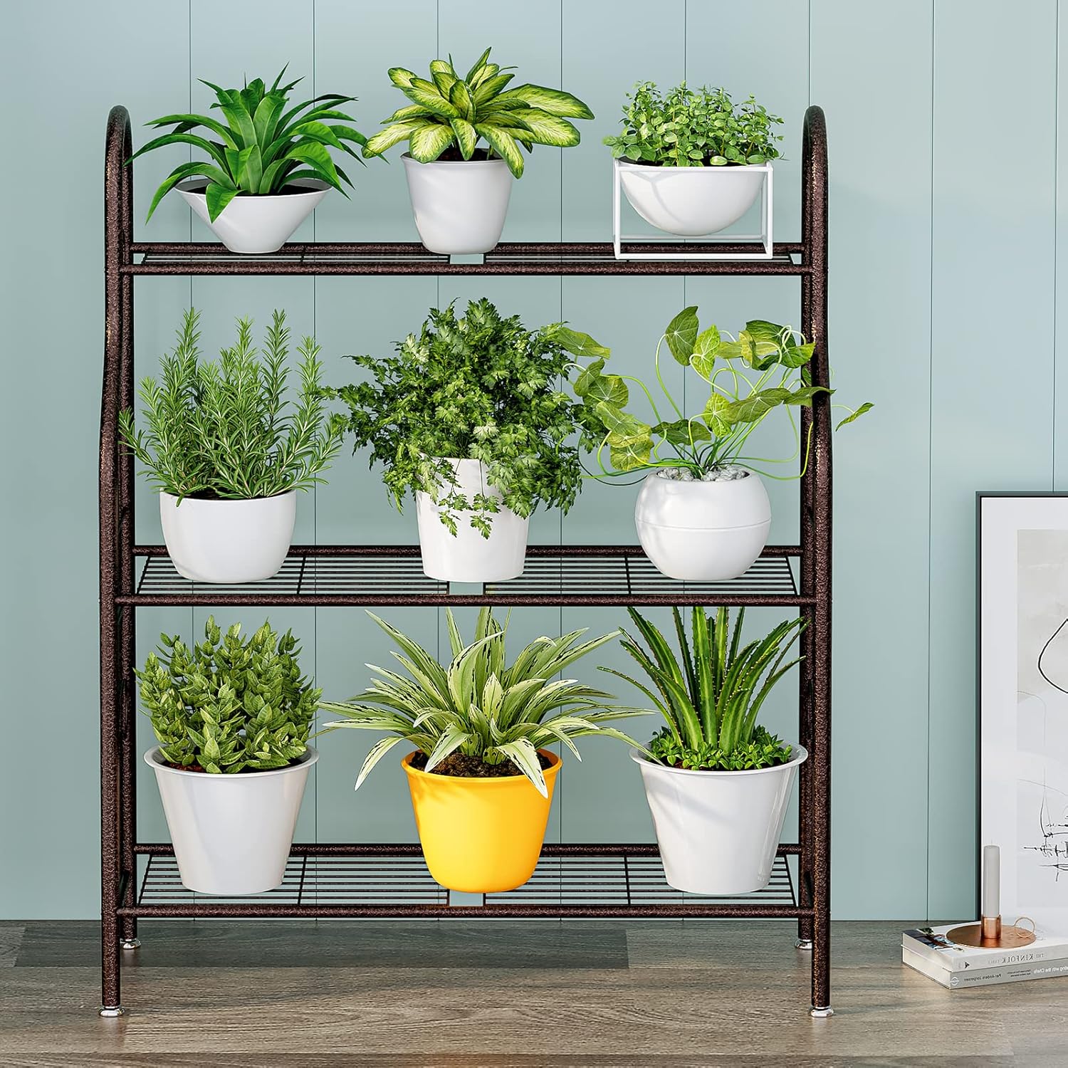 - WATERPROOF ANTI CORROSION The 3 tier plant stand is made of high quality iron, the matte powder coated tubular will not rust or Waterproof, easy to clean and can be used indoors or outdoors.