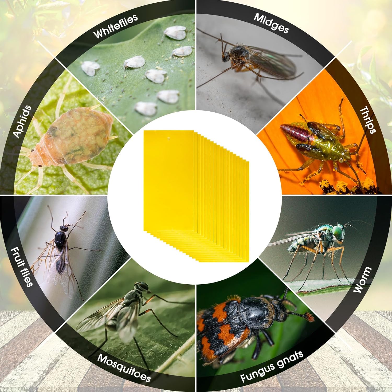 - Easy to Use: the sticky traps for gnats come with plastic holders and twist ties, you can choose to hang them on the branches with the twist ties, or place them on the holders and then insert into the soil as you need, simple to use