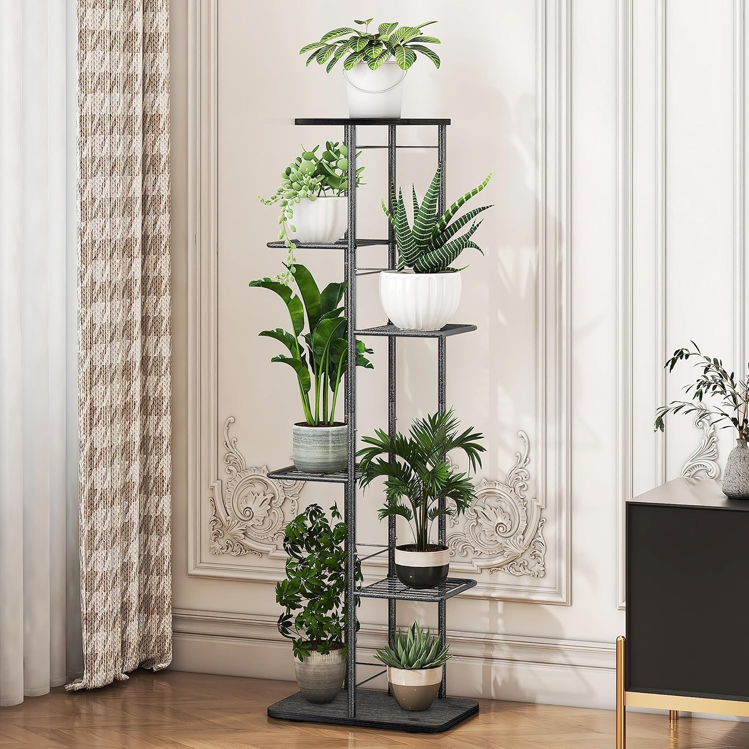 Simple Trending Plant Stand Shelf Indoor Outdoor Waterproof, 6-Tier 7 Potted Heavy Duty Metal Tall Flower Holder for Multiple Corner Display