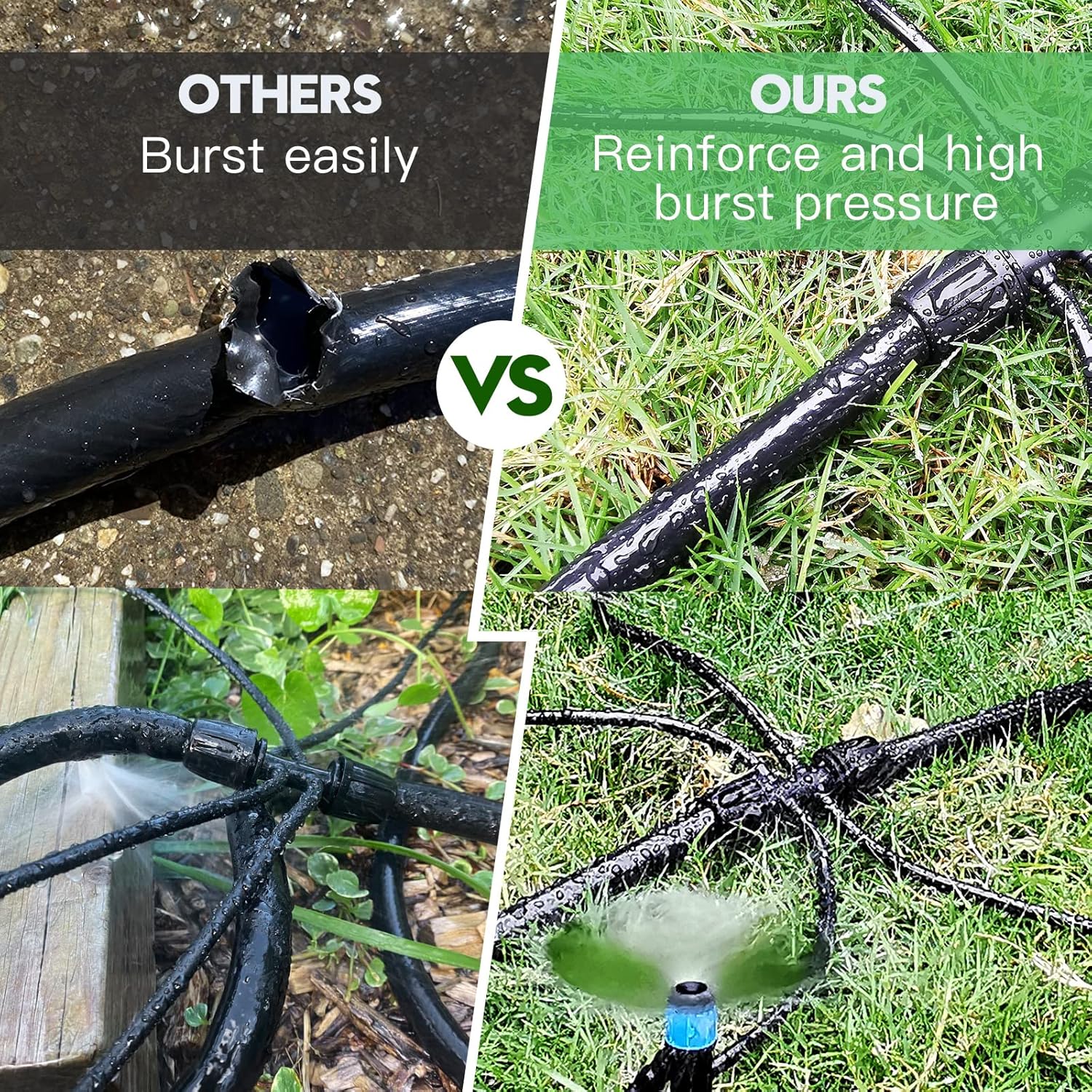 - Year-round Durability and Flexibility - Constructed from Polyethylene and a new flexible fabric material that's odorless and certified by ROSH, this drip hose is suitable for year-round use in any weather condition, withstanding temperatures between -20β to 70β.