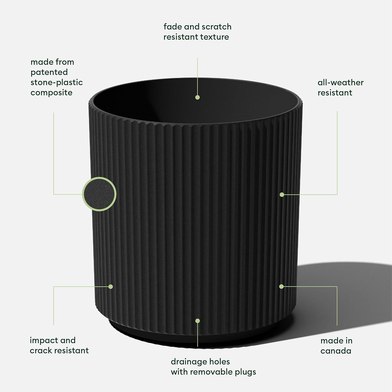 - DURABLE MATERIAL: Made from a plastic-stone composite, the Demi planter has a subtle textured finish and is all-weather resistant to cracks, scratches, UV and fading; perfect for hot or cold climates ranging from -20 to +120 degrees