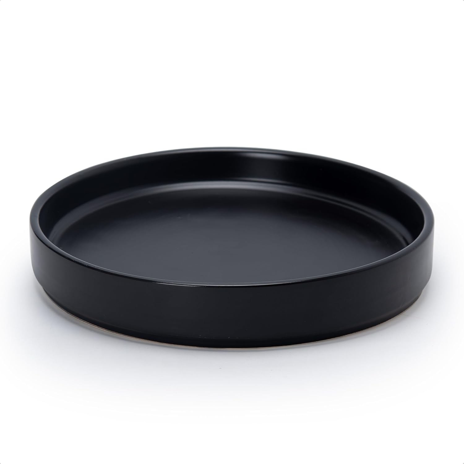 D'vine Dev Modern Round 8.7 Inch Ceramic Plant Pot Saucer, Planter Pot Drainage Tray for Indoor Plants, Matte Black, 97-T-B-4