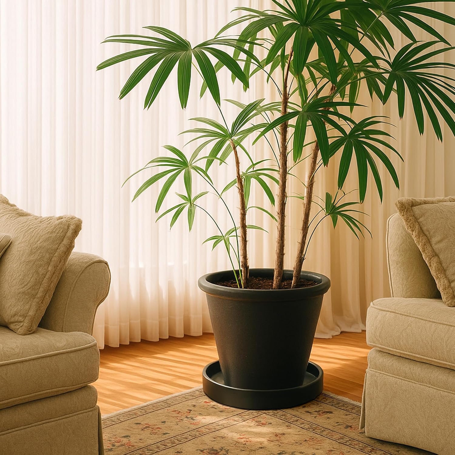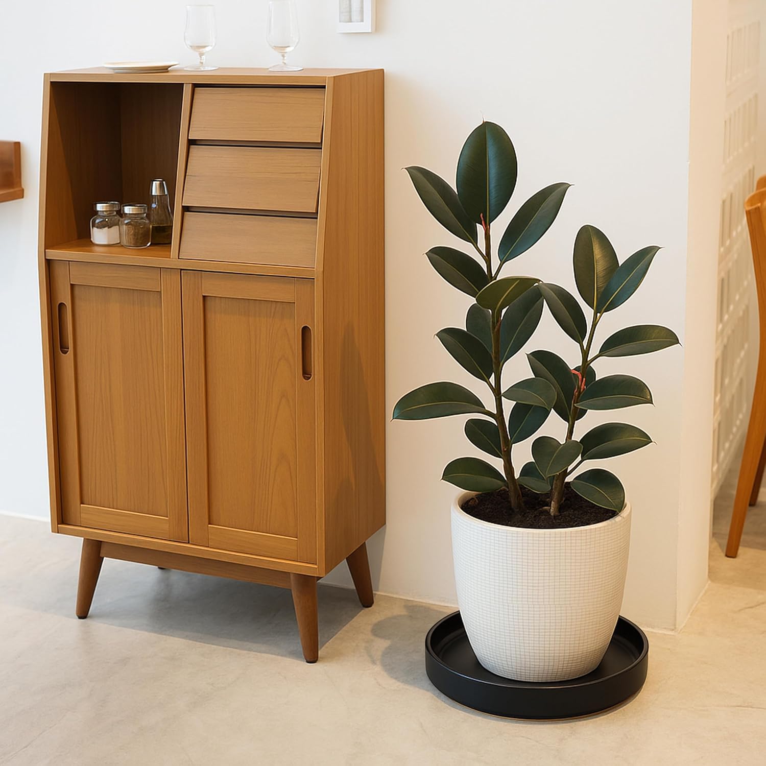 - Practical Set: Includes a 8.7-inch matte black plant drainage drip tray, complete with a protective scratch pad to safeguard your table/furniture surfaces.
