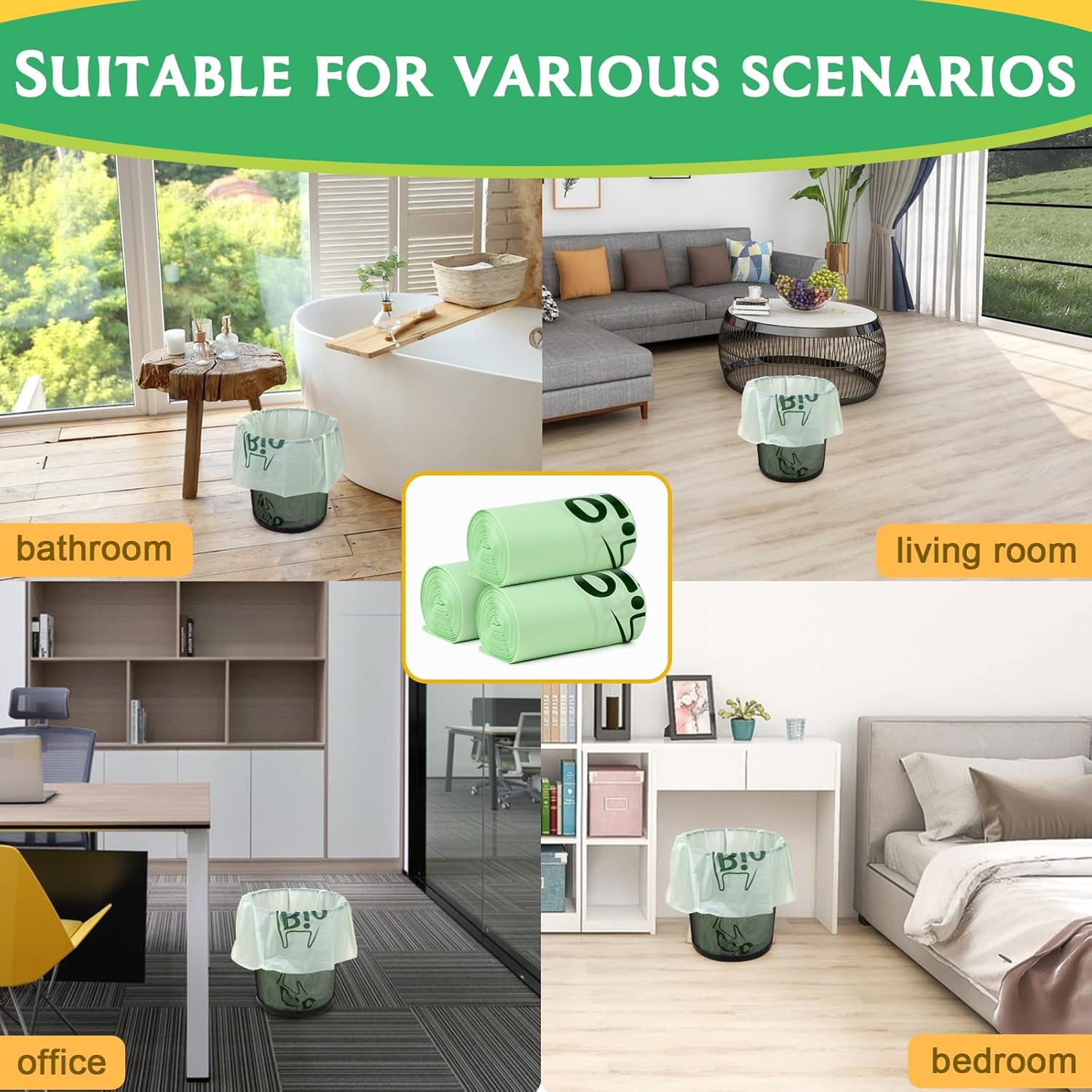 - Compostable Trash Bags:Packaged in rolls for easy portability and storage. 100 pcs per pack; size: 21.65*23.62 IN*0.87Mils; 30.2 liters capacity