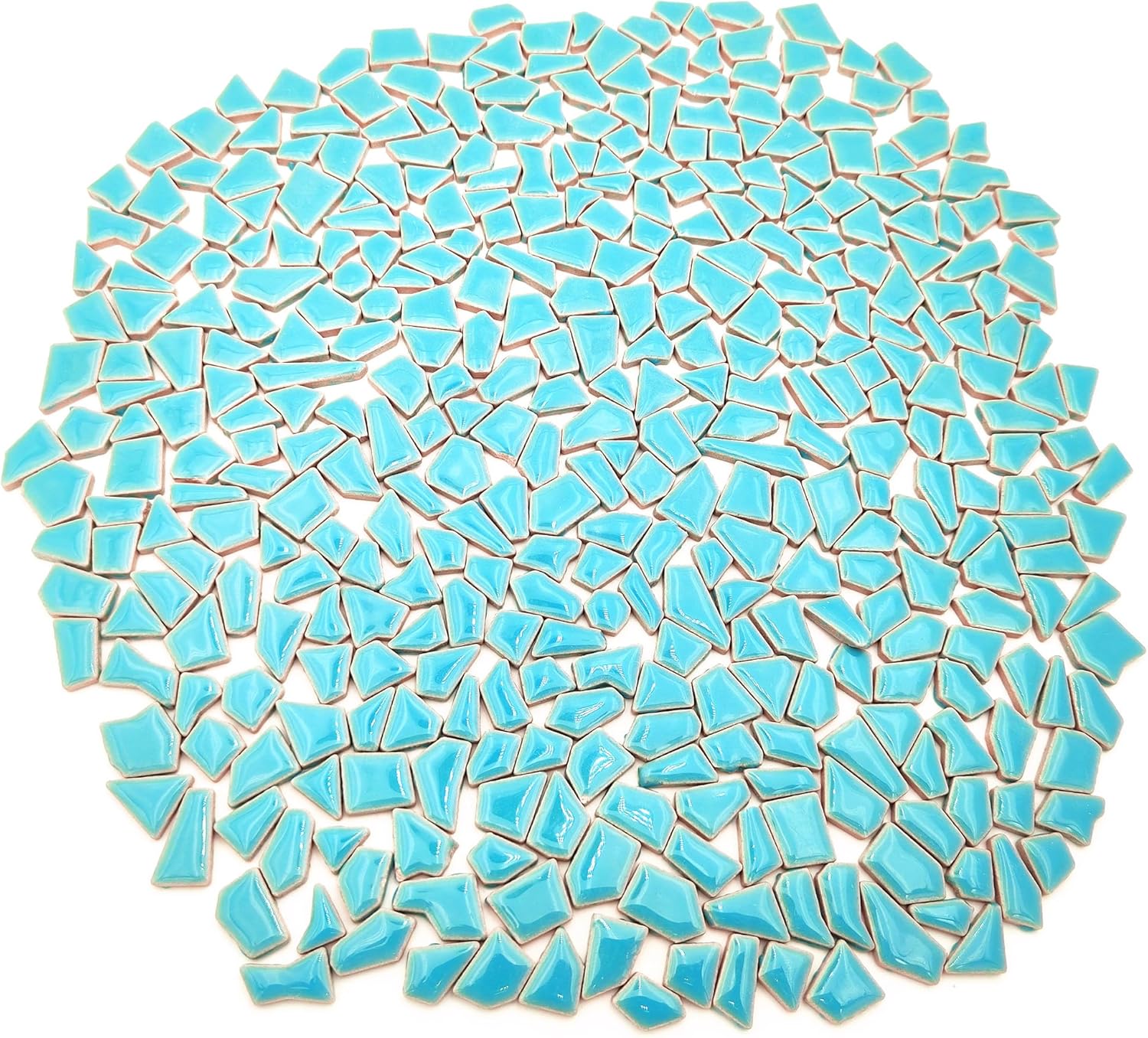1.1LB Irregular Ceramics Mosaic Tiles, Mosaic Pieces Stones for DIY Mosaic Making Craft Hobby Arts Home Wall Decoration (Sky Blue)