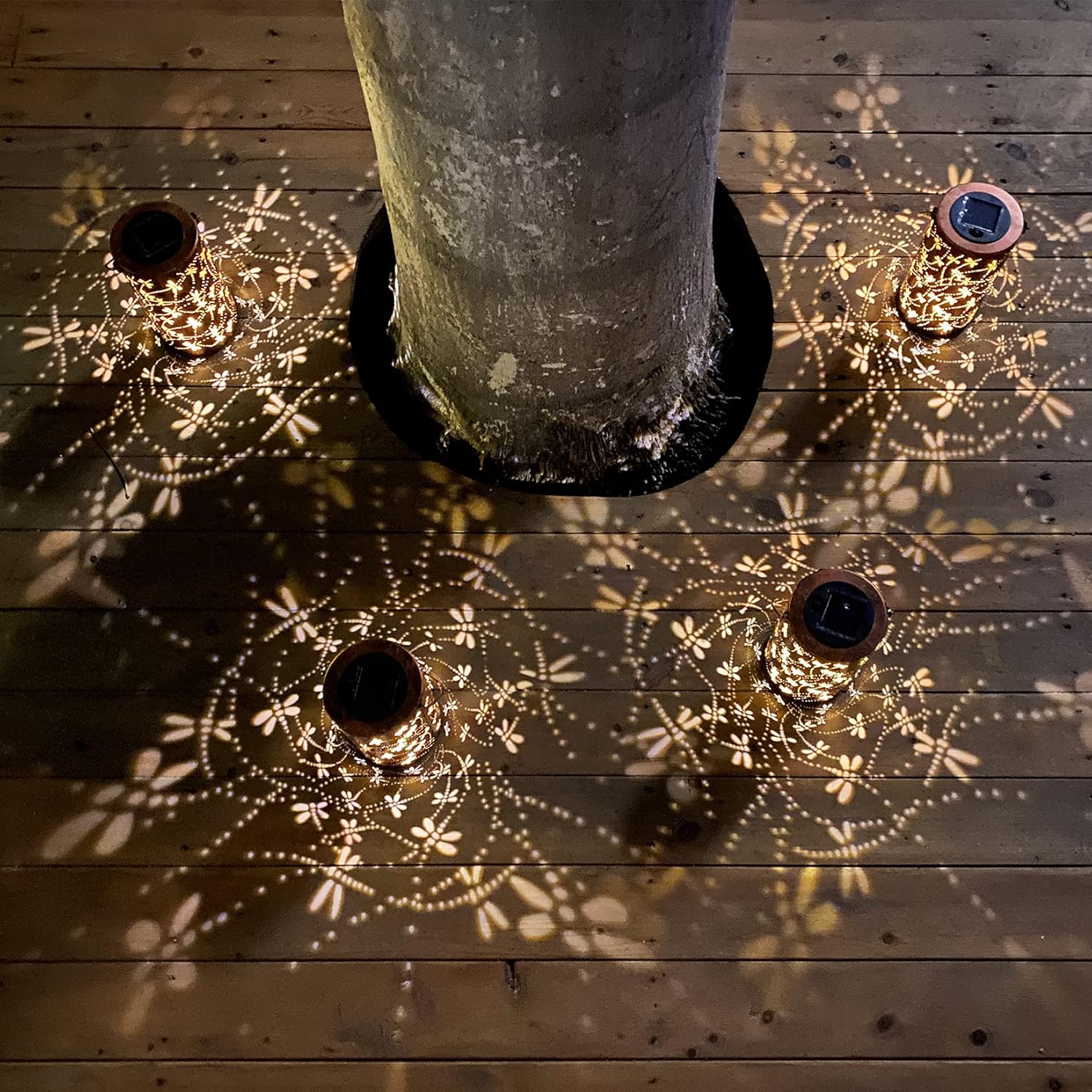 - Gorgeous & imaginative Garden Decor - Fusion the retro gold, copper of exteriors and irregular pattern inside, at darkness, the solar lantern casting a bright, warm light with dragonfly pattern, which looks like a dragonfly flying symbolizes change.