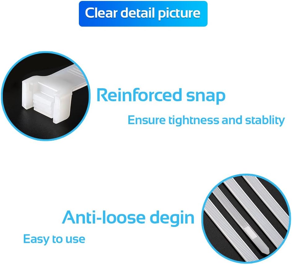 - Easy to Use: These cable ties are easy to use and require no special tools. Simply insert the pointed end into the locking mechanism and pull the strap tight to secure the cable tie.