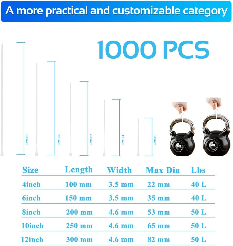 - High Tensile Strength: The 1000Pcs 12Inch White Cable Tie Zip Ties are industrial level heavy-duty ties with a tensile strength of 50 pounds, making them strong enough to secure and organize a variety of items.