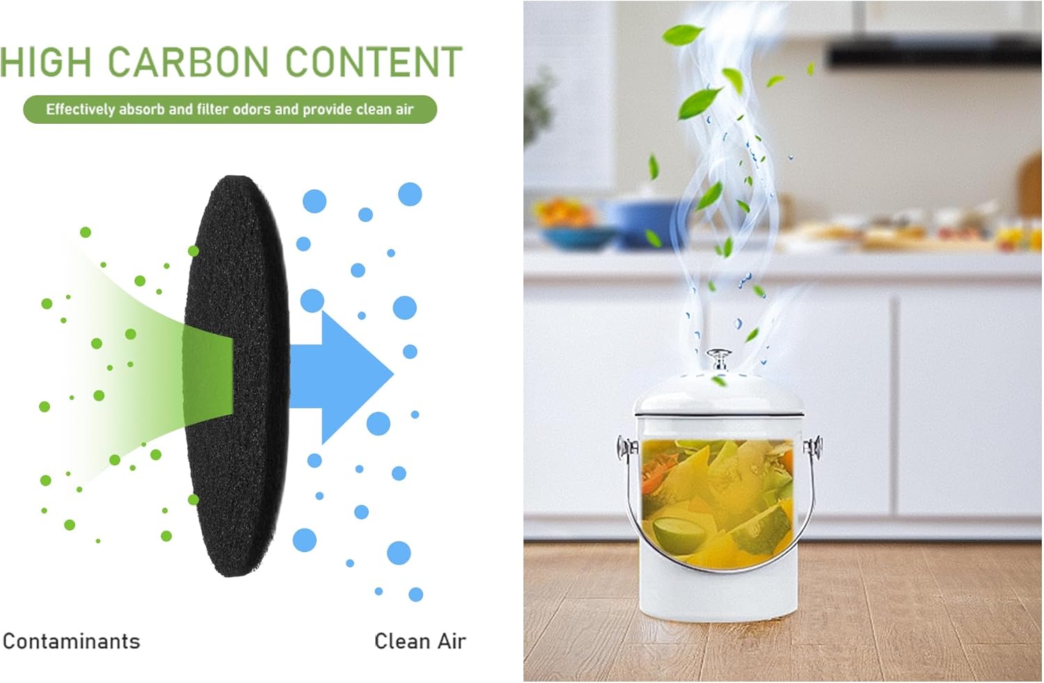 - 【Eliminate Kitchen Odors】Our 10 Pack Charcoal Filters are designed to effectively absorb and trap food odors inside your compost bin, keeping your kitchen smelling fresh and clean.