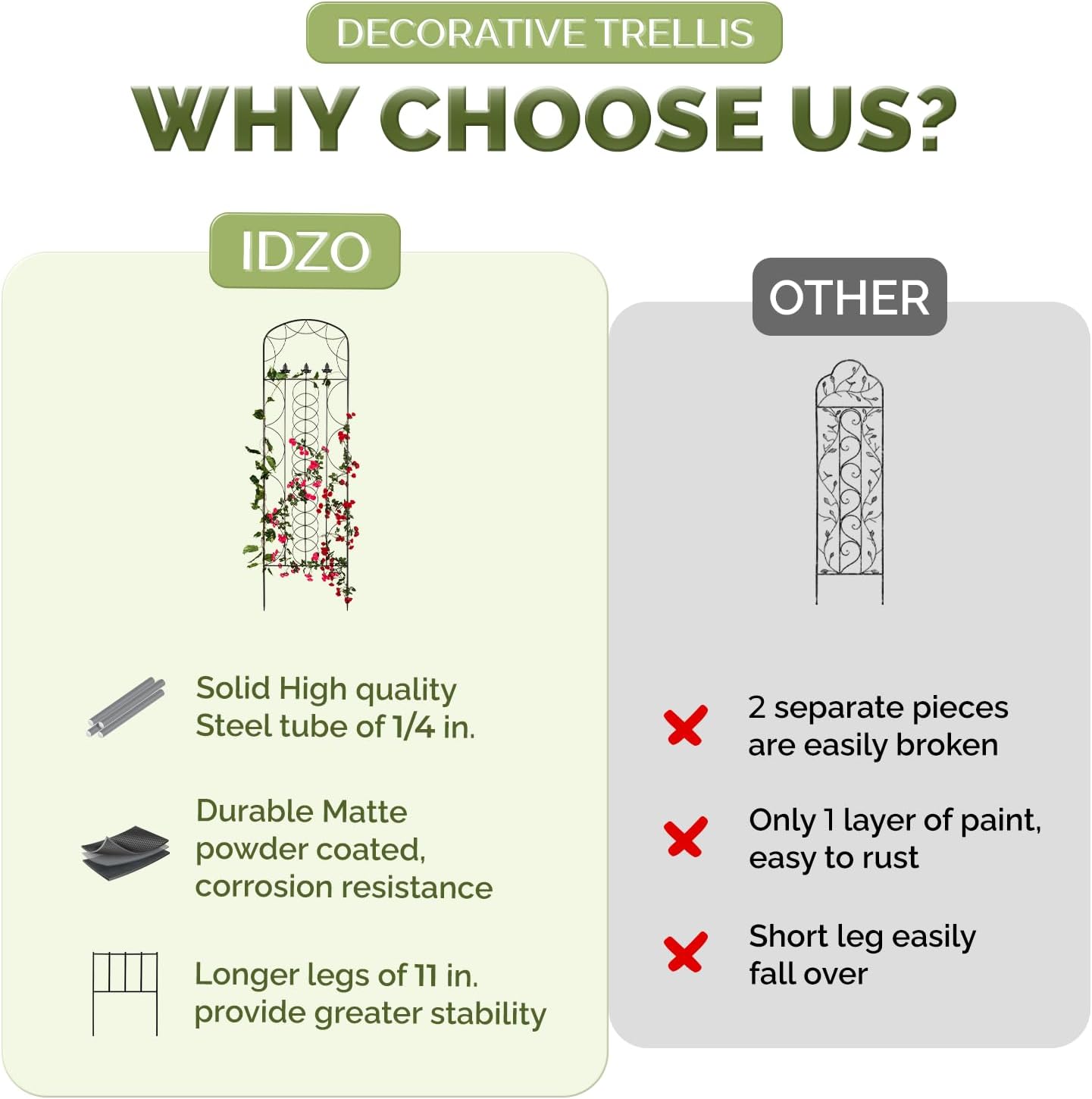 - π BUILT FOR LONG LASTING BEAUTY: The high quality steel trellis for climbing plants with outstanding strength and durability provides solid support for climbing plants; Its powder coating protects it from rust and corrosion, ideal for outdoor use