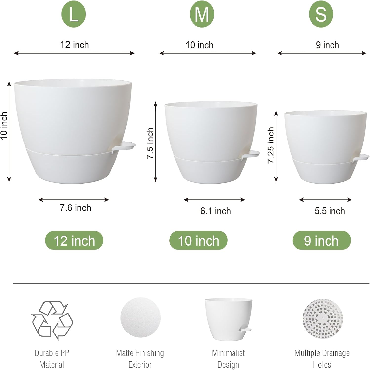- Self-Watering Pots: Combines 3 sizes (12/10/9 inch) for repotting and growing large indoor/outdoor plants