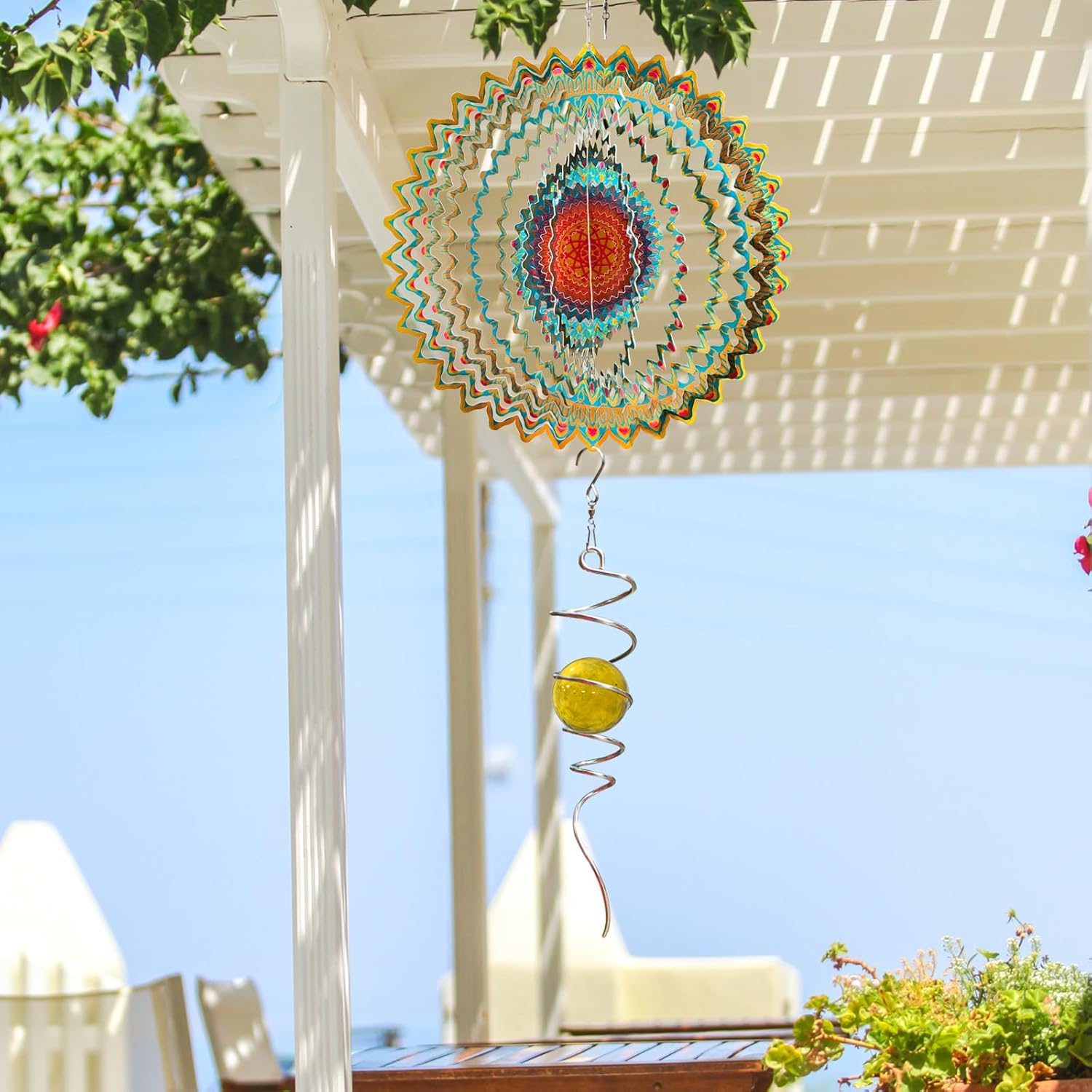 - ăUnleash the Magic of Wind SpinnersăIt's not just a pretty sight - it's a stress-buster, let the dance of it melt away your worries. Hang it as a hanging wall ornament or use it as a deterrent to pesky critters. It can also be used as a holiday decoration.