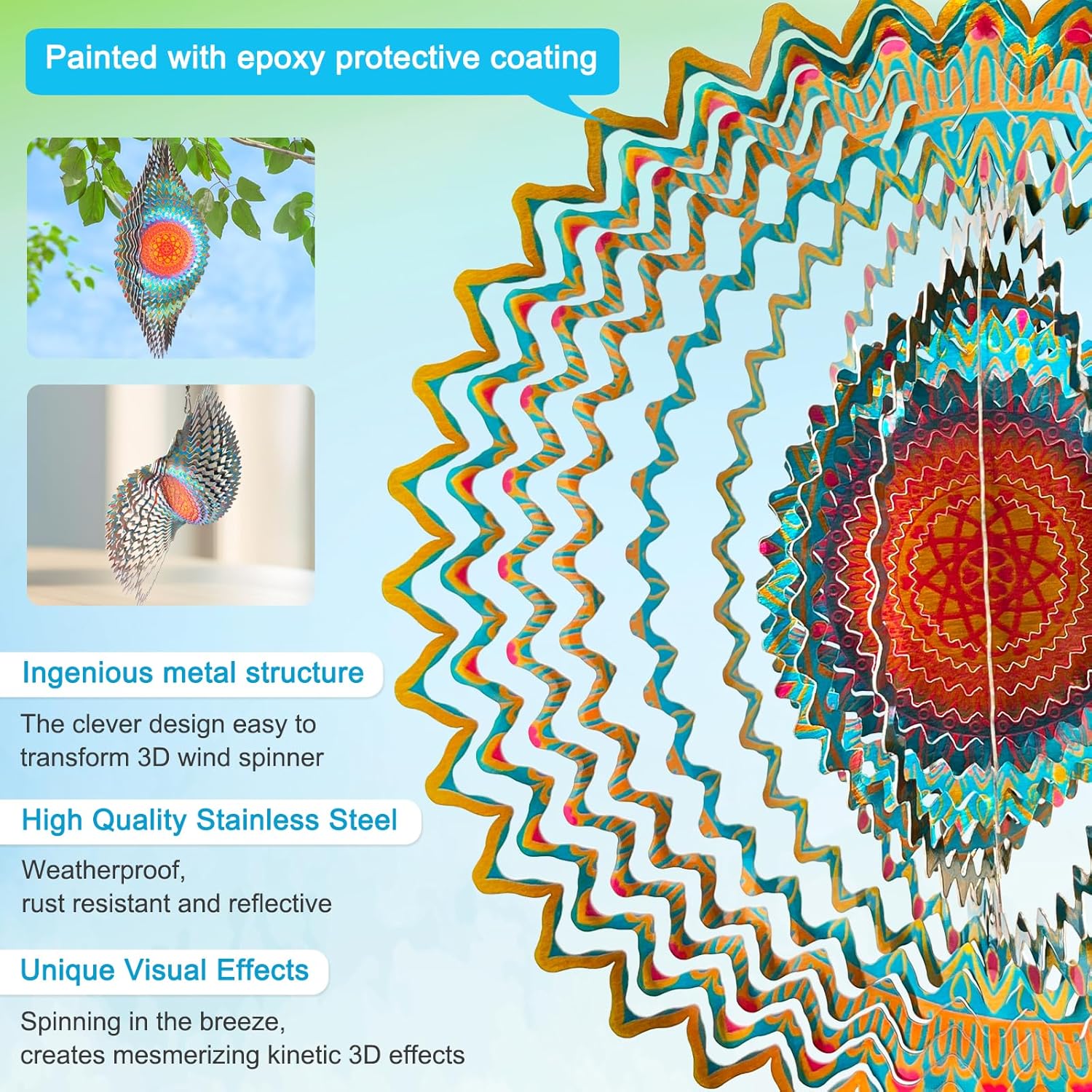 - ăKinetic 3D Wind SpinnerăThe kinetic 3D mandala wind spinner has a stunning 3D mandala design that the unique flow of light surface adds vibrant colour and movement! This kinetic art metal wind spinner will add charm to your garden or yard.