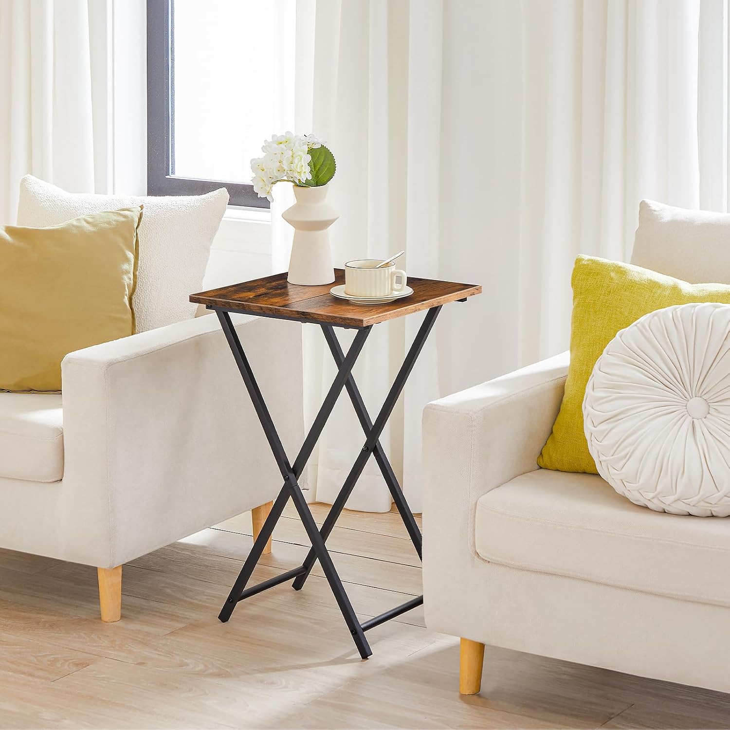 - Multiple Advantages: Don't want the side table taking up too much space when not in use? This TV tray can easily be folded and stored under the sofa, freeing up more common space.When folded, the folding table is portable to be carried anywhere needed
