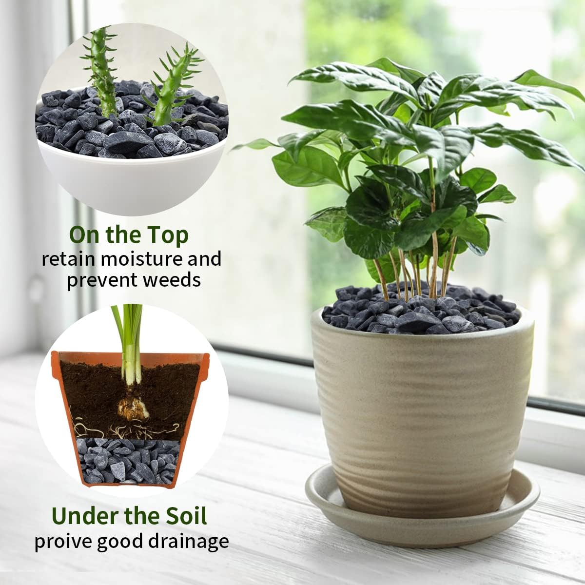 - 【Black Gravel】FANTIAN black rocks are natural with no polish or coating and no added fillers, dyes, oils, or substances. The color won't fade away through time and it is completely safe to use around pets and children