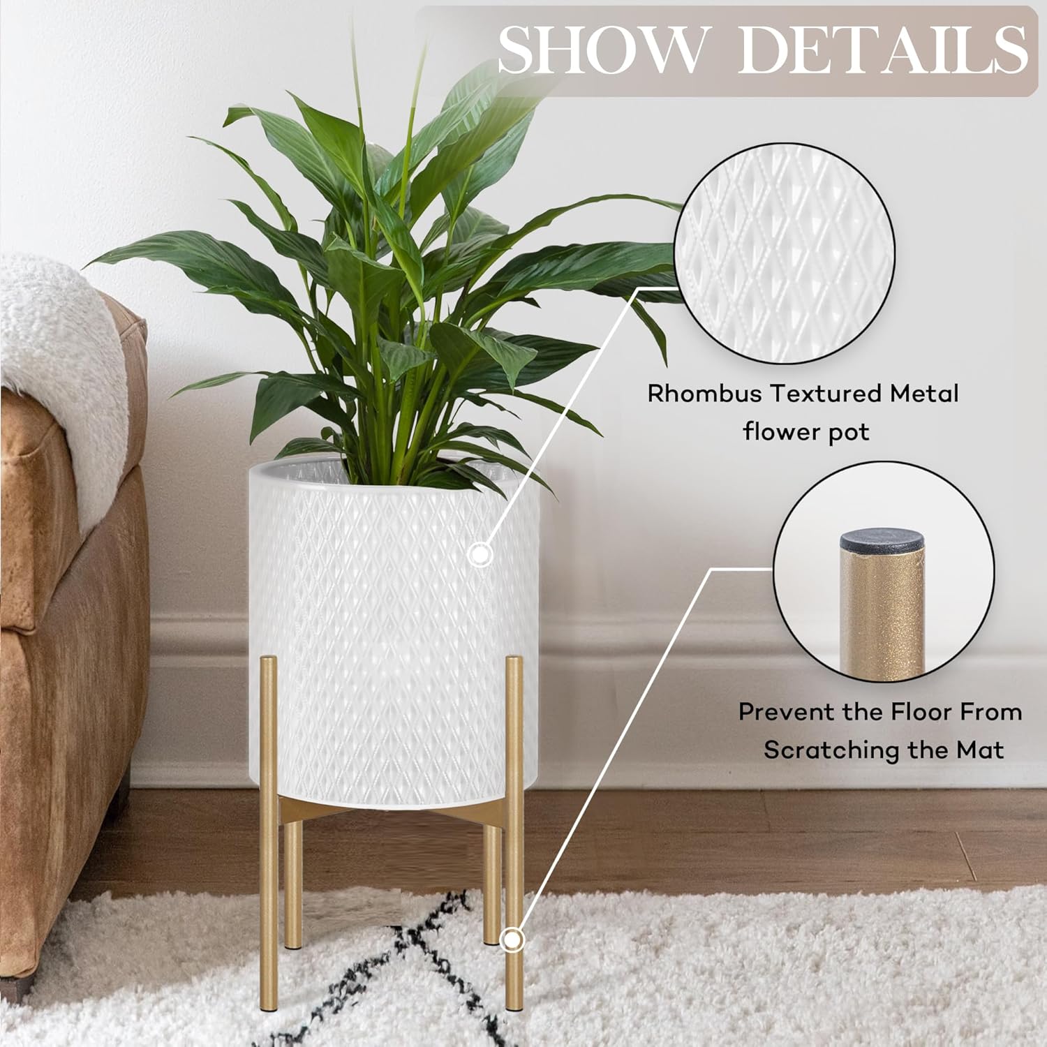 - Mid Century Planters: Featuring a sleek gold metal stand and white metal flower pot with geometric accents, these planters embody mid-century minimalism. Their timeless design makes them a perfect fit for any style of decor.