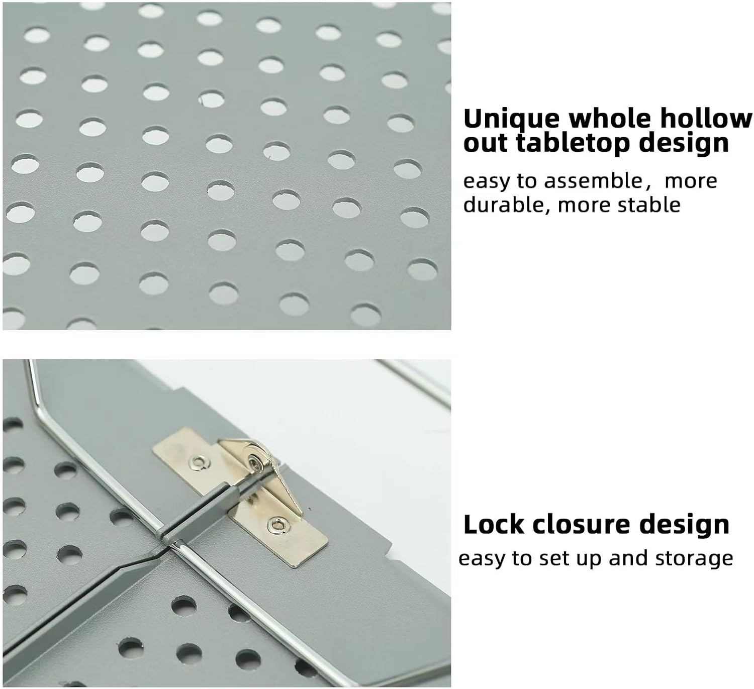 - NEW UPGRADE: Our new upgraded high quality folding table tops feature a unique Aluminium alloy Hollow out table with lock closure design, compared to other folding table tops of 2 piece table connection, easy to setup. And more durable and stable
