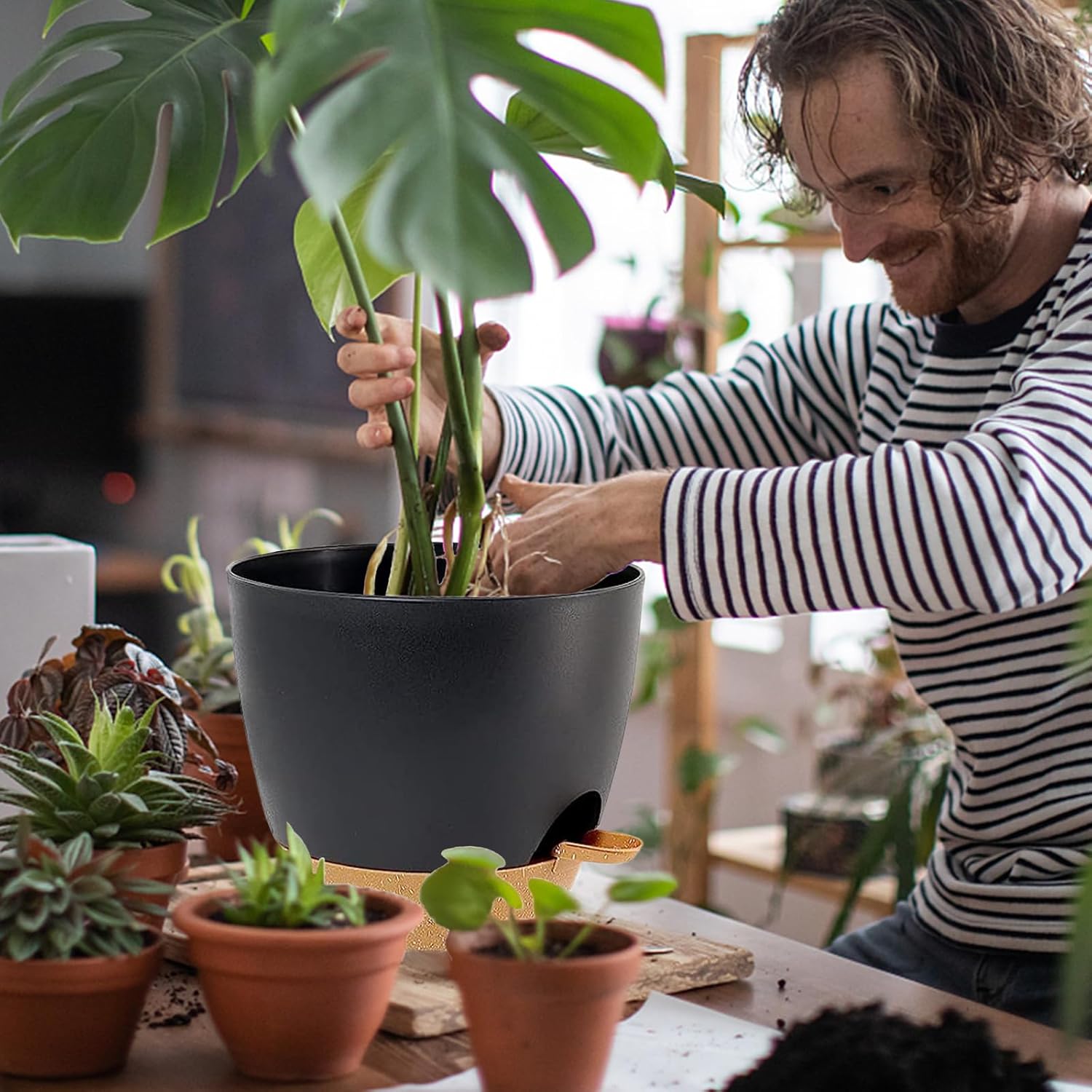 Large Self Watering Planters Plant Pots Outdoor 9/10/12 Inch for All House Plants Black Plastic Flower Pots with Drainage Hole Flower Pots for Indoor Plants Gift Idea for Home Decor