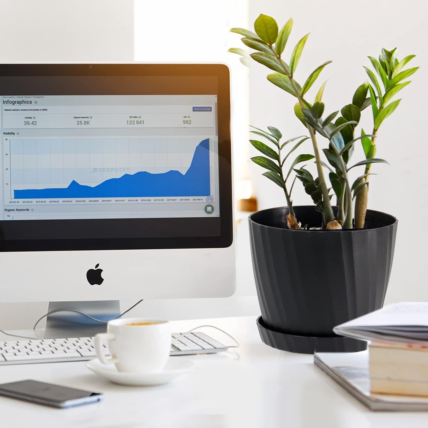 - MODERN MINIMALIST DESIGN - White matte finishing surface plant pot with strip pattern and round shape design bringing out a modern minimalistic styled and elegant. And bottom surface has feet like lines to prevent from sliding. This plastic planter will bring a modern and stylish visual. Great for all house plants.