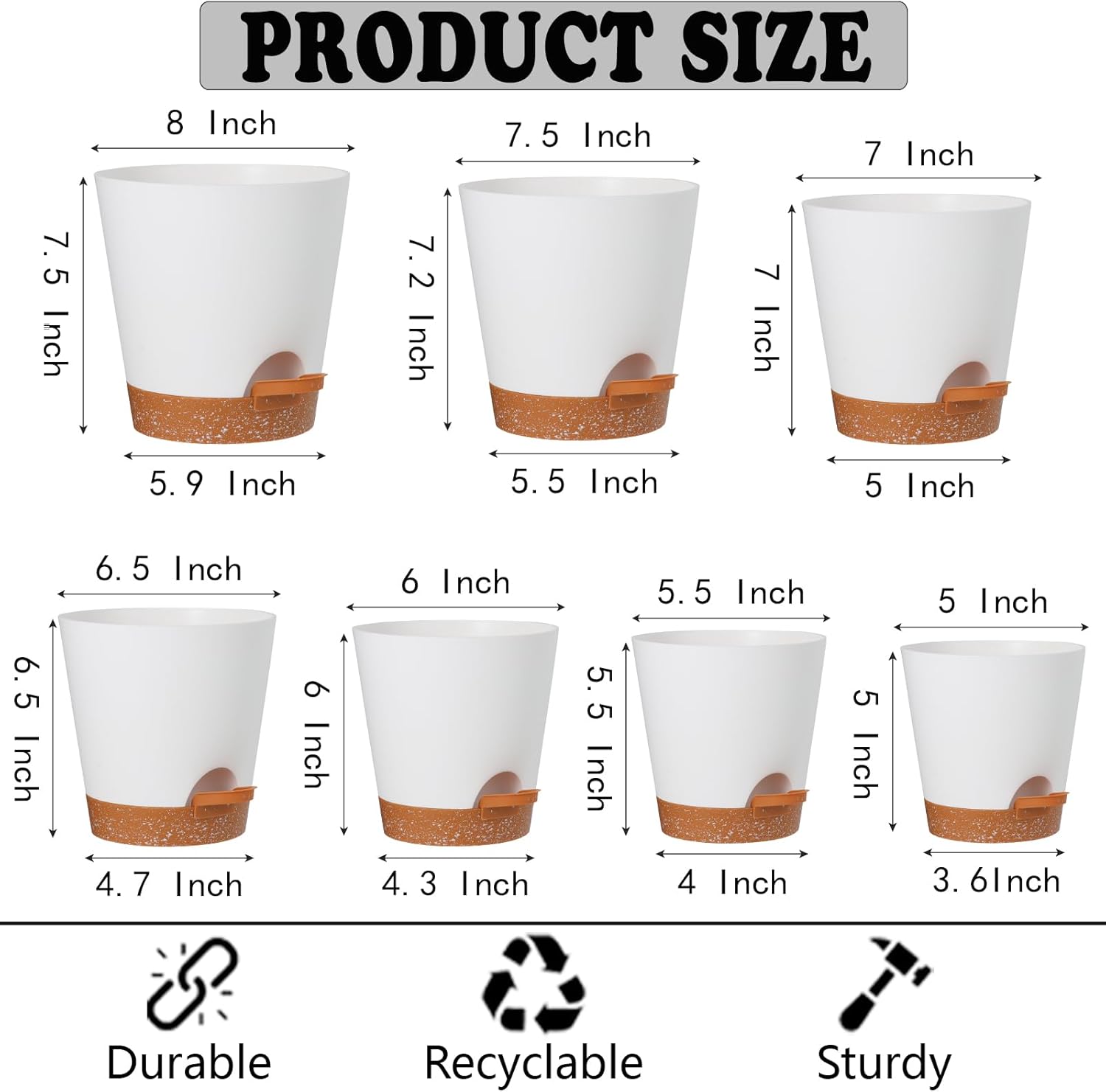 - Package content: 7 pcs * Planters set. Crafted with precision and combines with seven different sizes. Opening diameters of 8/7.5/7/6.5/6/5.5/5 inches. Please note that the planters are sold separately, and plants are not included.