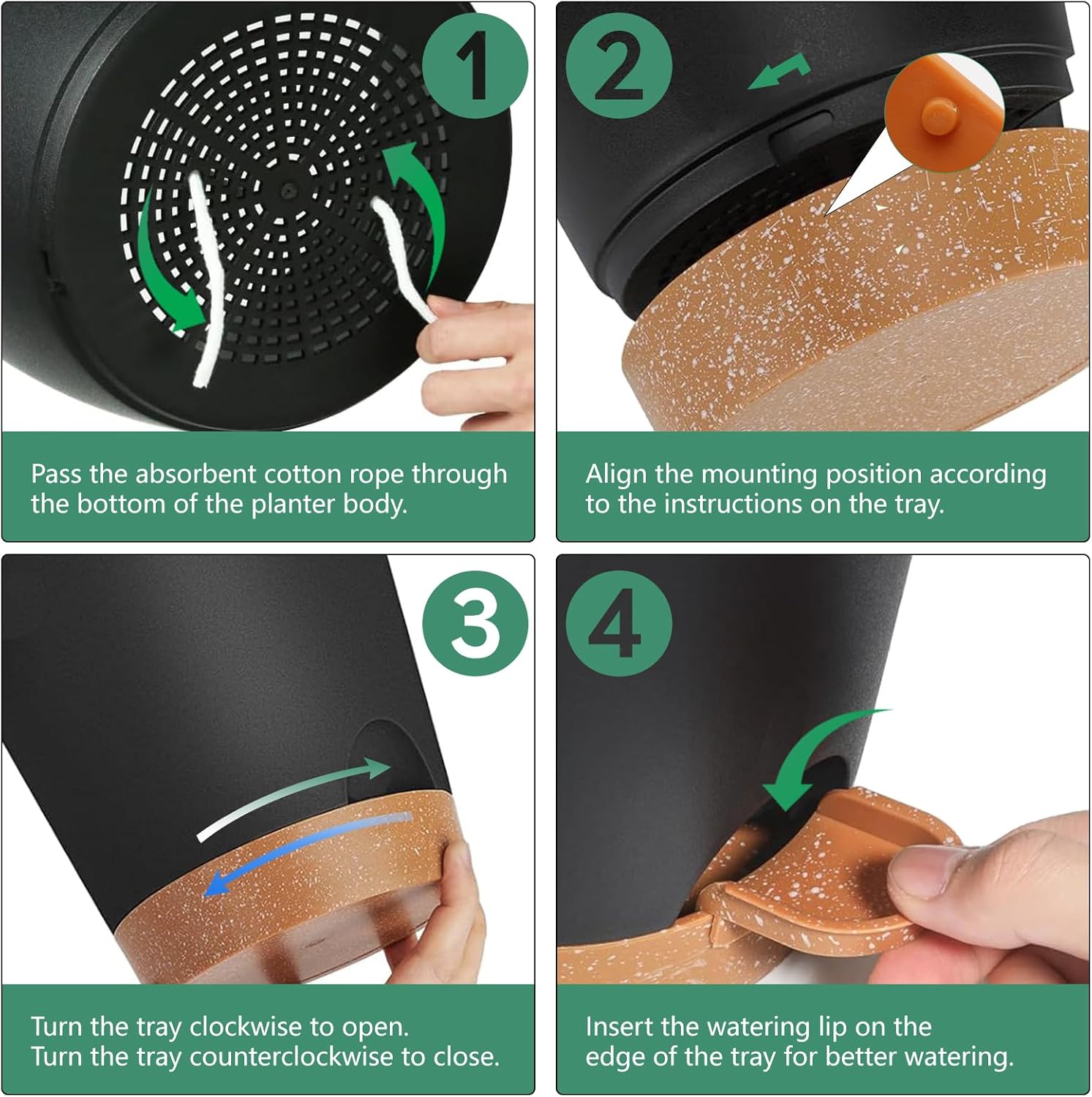- SUN-E Self Watering Planter, precisely brings you such a tranquil oasis.Not just a tool for nurturing plants,but also a manifestation of the aesthetics of life.The planters seamlessly integrate the beauty of nature with modern design elements.The varying sizes offer flexibility in arranging plants,the contemporary finish adds a touch of sophistication to any space.With their optimal drainage and watering system,the planters provide the ideal environment for your beloved indoor plants to thrive.