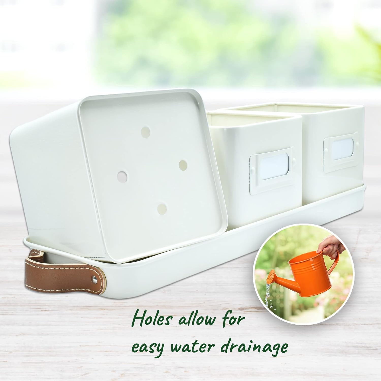 - π± γ Window Sill γ Our sleek steel indoor herb planter enhances home decor. Featuring a leather handle for easy carrying, you can move your herbs to adjust for sunlight or decor needs.