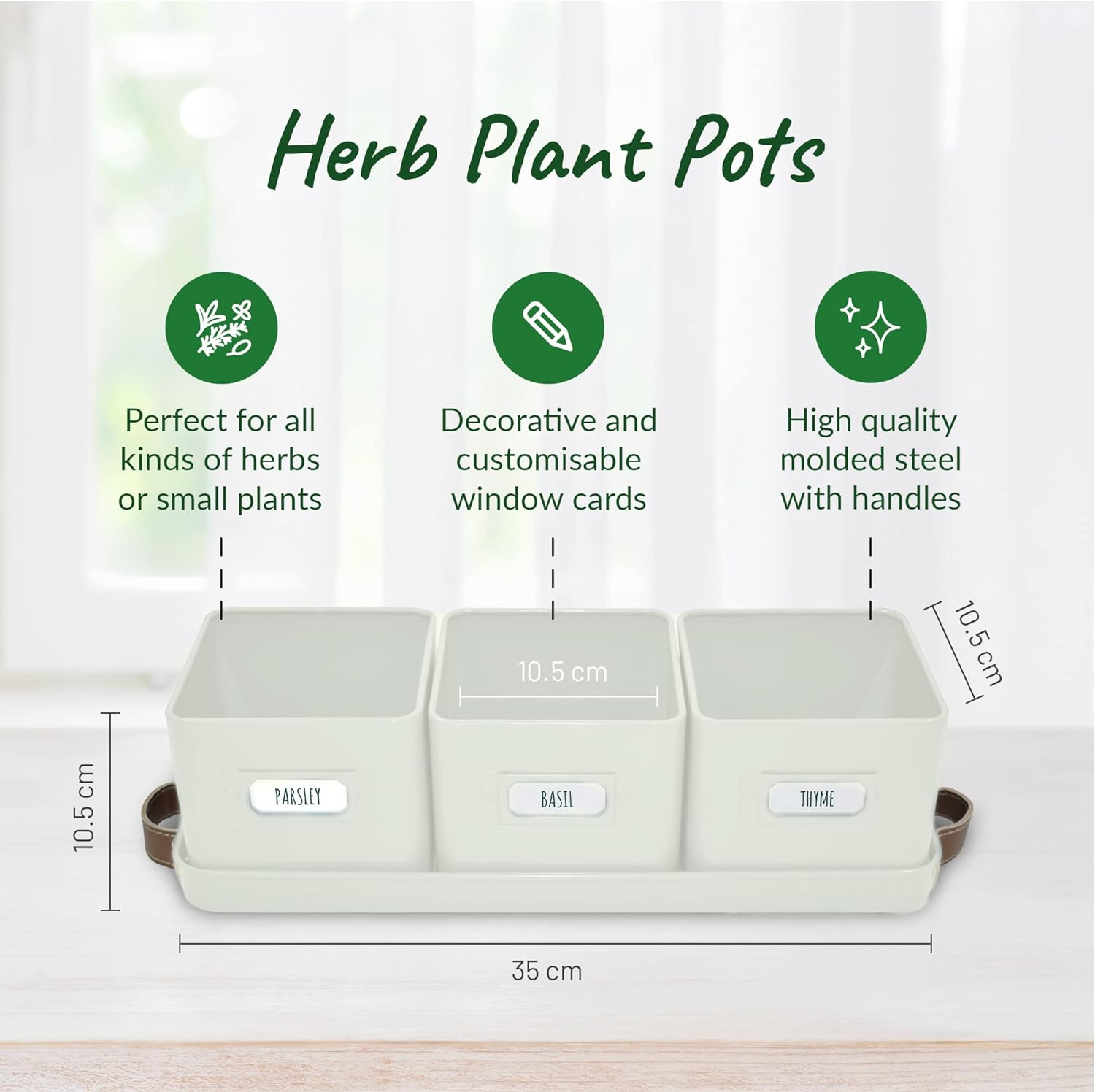 - πΌ γ Nurture γ Our window sill herb pots make it easy to grow fresh herbs like mint, basil, and parsley, encouraging healthier, more flavourful meals. Enhance your kitchen ambiance with a convenient and aromatic herb garden.