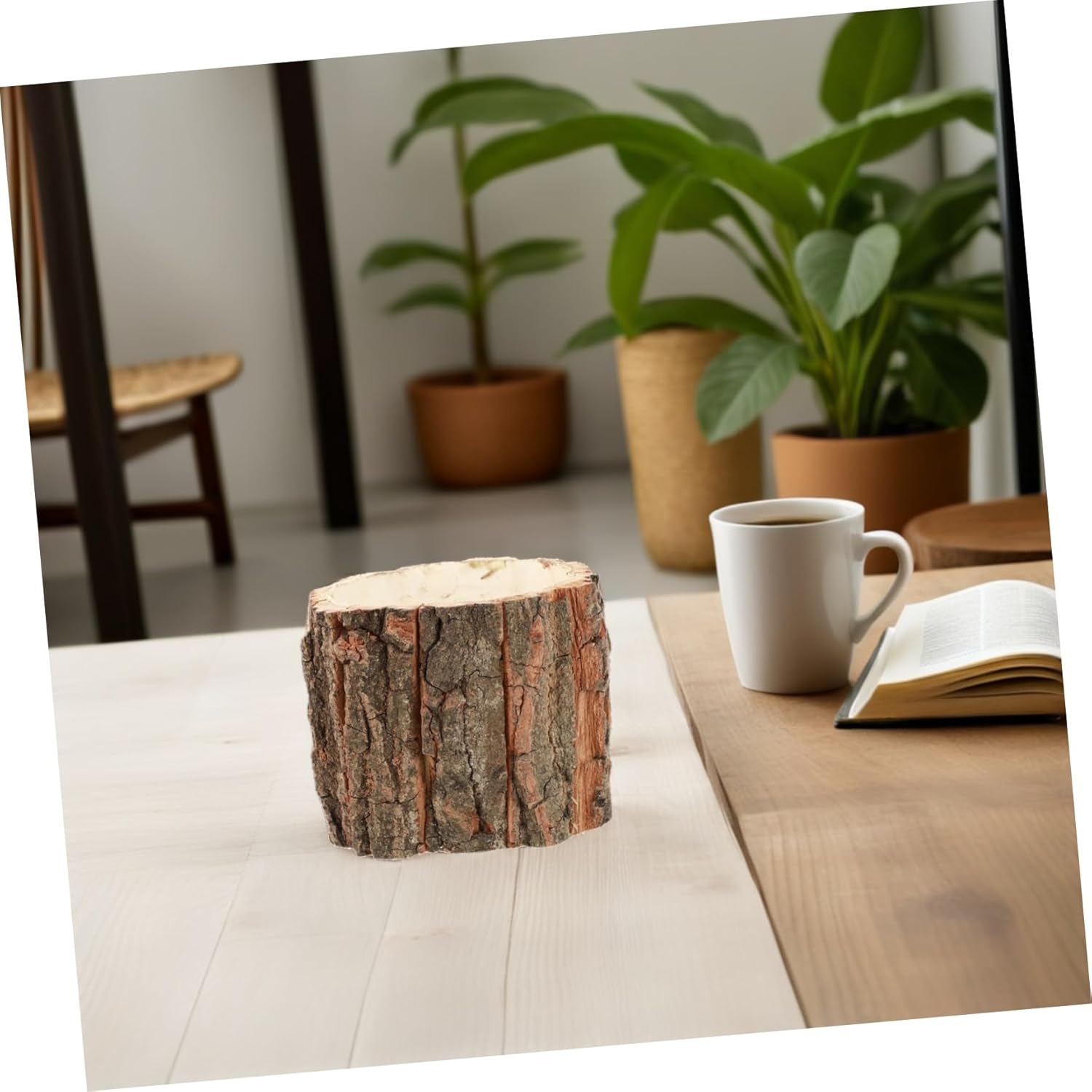 Housoutil Wooden Bark Flower Pots, 6PCS Rustic Farmhouse Planters, Log Plant Containers for Succulents, Cacti, Home and Garden Decor, Weddings, and Holidays