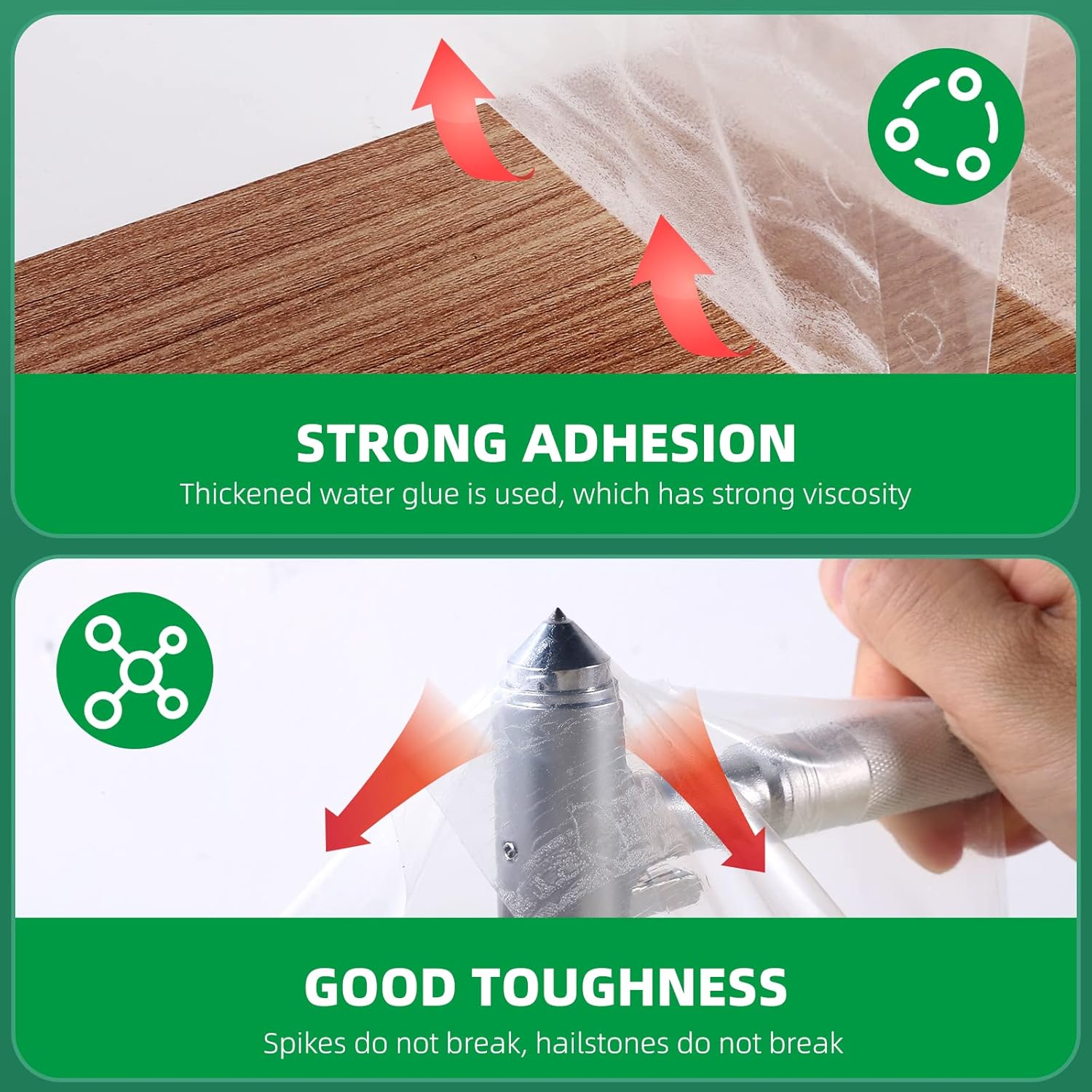 - Premium Quality - Our heavy duty greenhouse plastic tape, made from polyethylene and 6.3 mil plastic sheeting, provides tear resistance, long-lasting hold, and waterproof protection. It is also super sticky, UV-resistant, and low-temperature resistant.