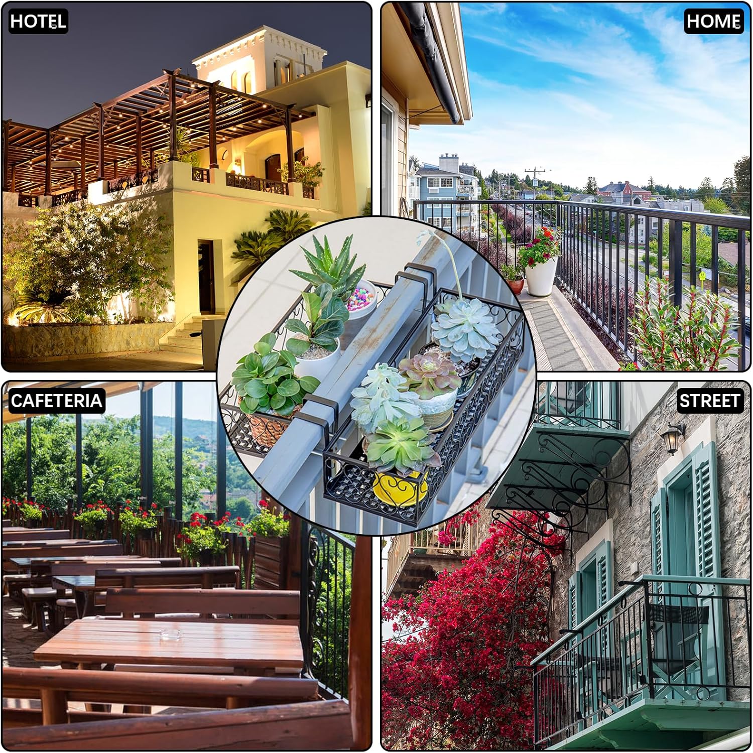 - Large Capacity: The plant holder for railing is designed with an artistic square shape, and each basket measures 23.6*7.8*4.7in(L x W x H), providing large space for putting succulents and small potted plants. And it can not only let your plants enjoy enough sunlight for better growth while making your balcony more charming