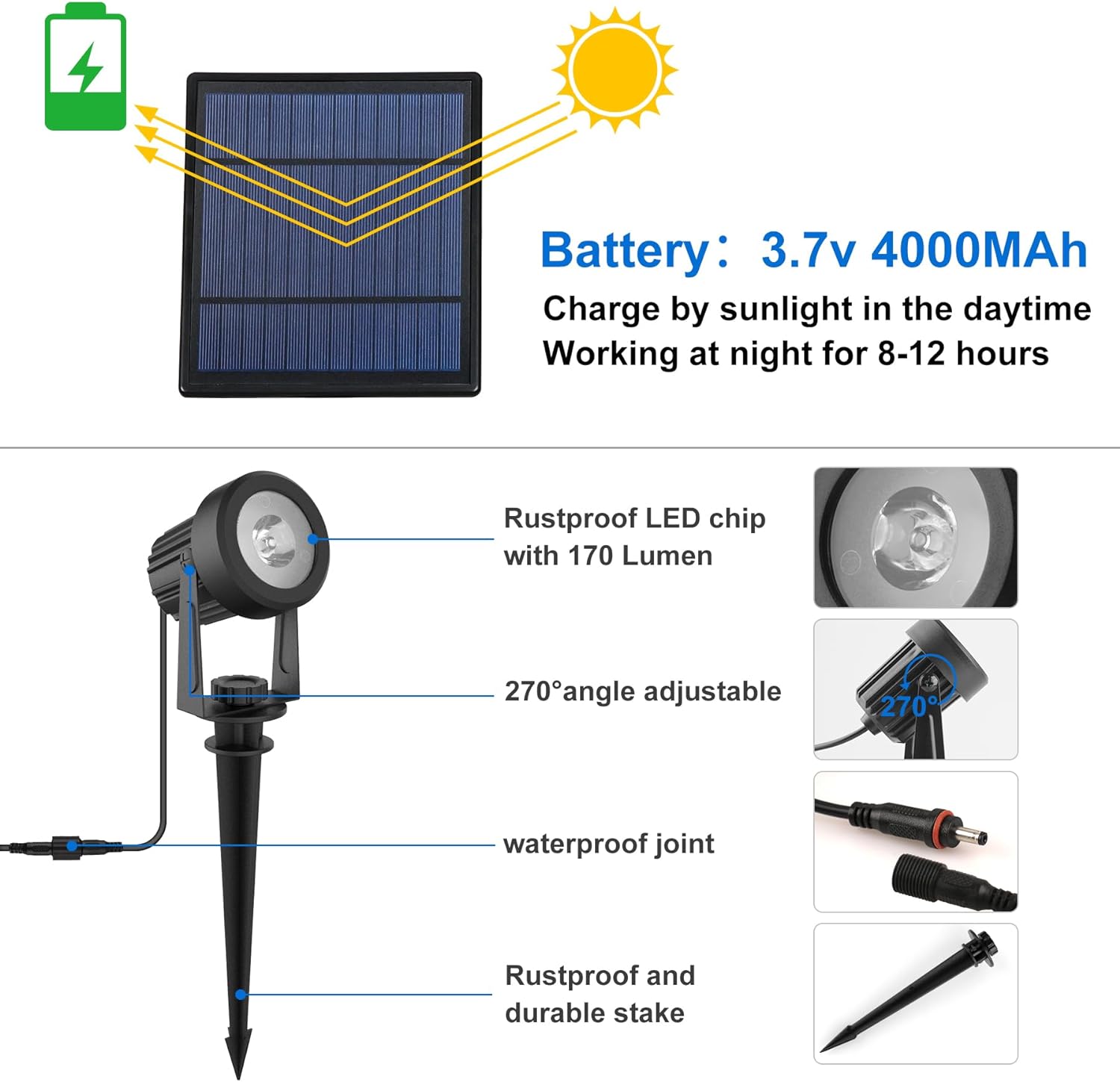 - Waterproof IP65: Black housing ABS high quality landscape spotlight with excellent stability and durability.IP65 waterproof rating, the solar landscape light can withstand rain, snow, snow and other bad weather