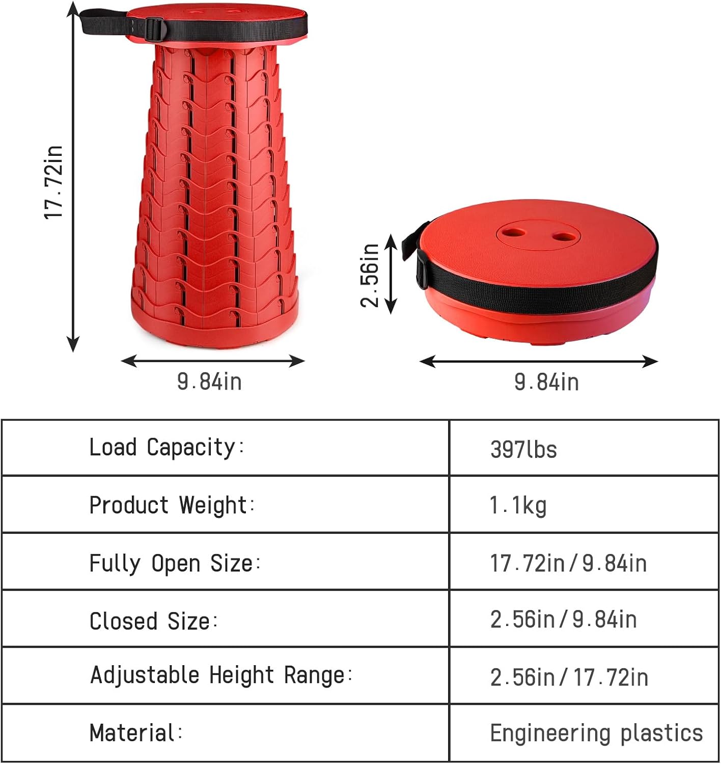 - COLORFUL AND PORTABLE: Introducing our collapsible stool by ZTMT, featuring a vibrant and colorful stool body. This stool is not only visually appealing but also highly convenient, thanks to its retractable design with an adjustable height range from 2.36 to 17.72 inches. The stool comes with a built-in carrying strap, allowing you to easily take it with you wherever you go.