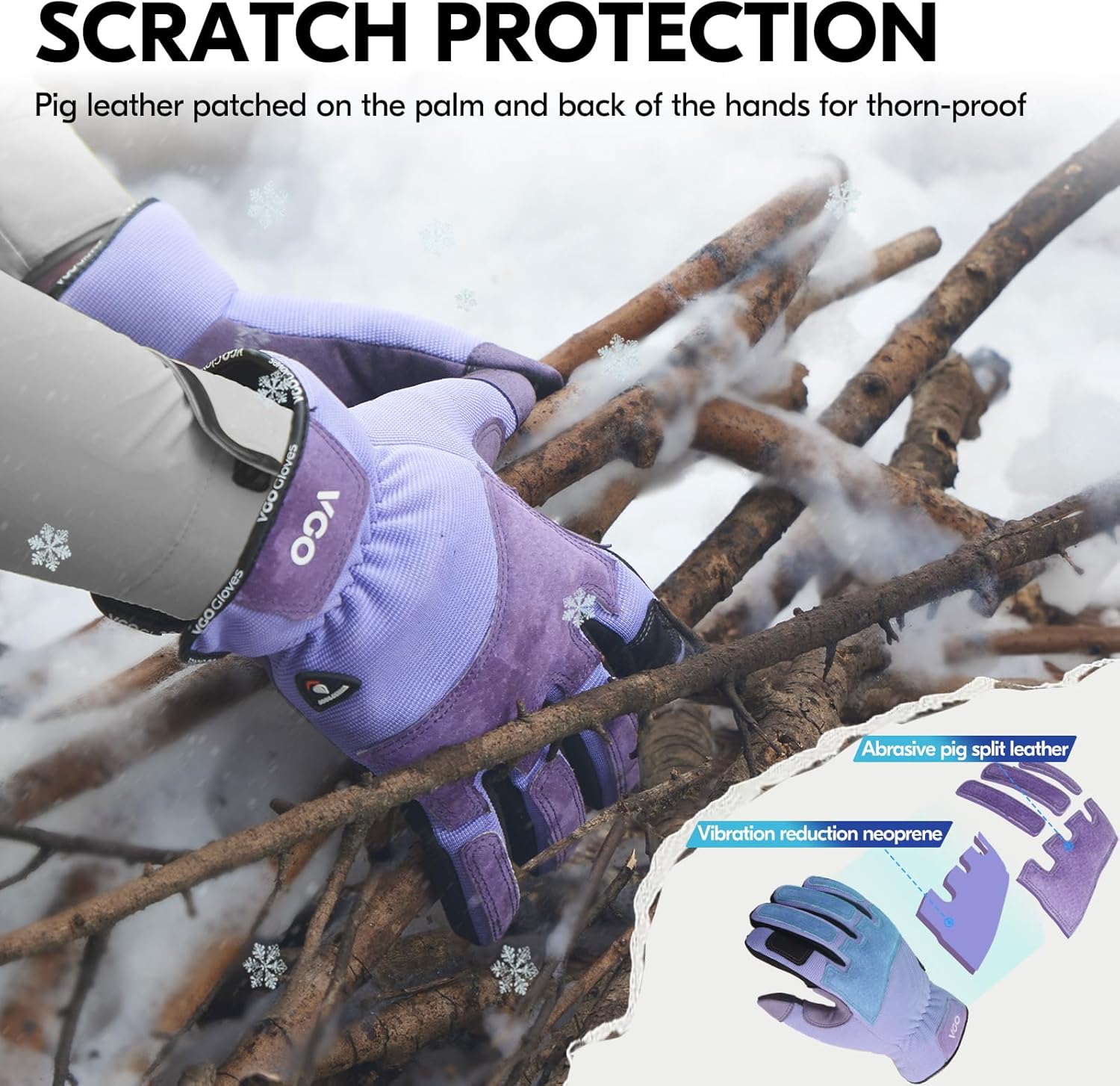 Vgo... Winter Gardening Gloves Women,Safety Work Gloves, Puncture-proof,Thornproof,Touchscreen(1 Pair,L,Purple,SL7471FLWP)