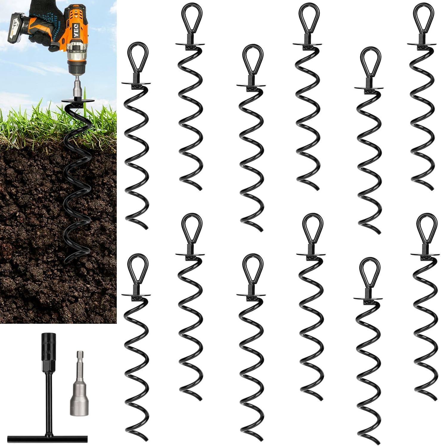12 PCS 15.3 Inch Ground Anchors Heavy Duty for High Winds Screw in Earth Anchor Swing Set Spiral Auger Stakes for Tent Trampoline Tree Garden Fence Sheds Swingset, Easy Use with Drill
