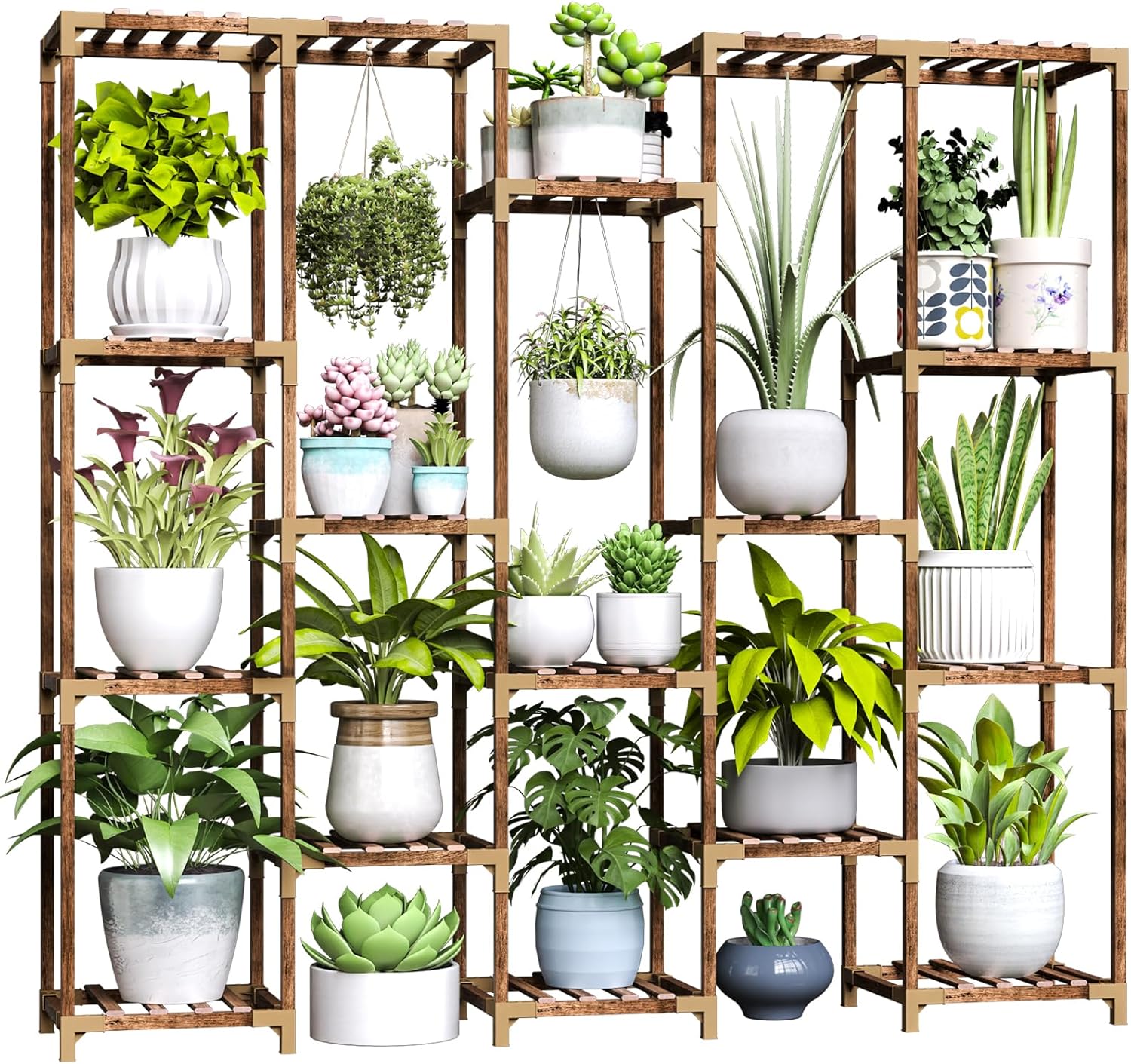 HOMKIRT 19 Tier Large Tall Plant Stand Shelf for Multiple Indoor Plants, Multi Tier Wooden Outdoor Plant Rack Holder Table Flower Stand for Patio Porch Garden Living Room Window