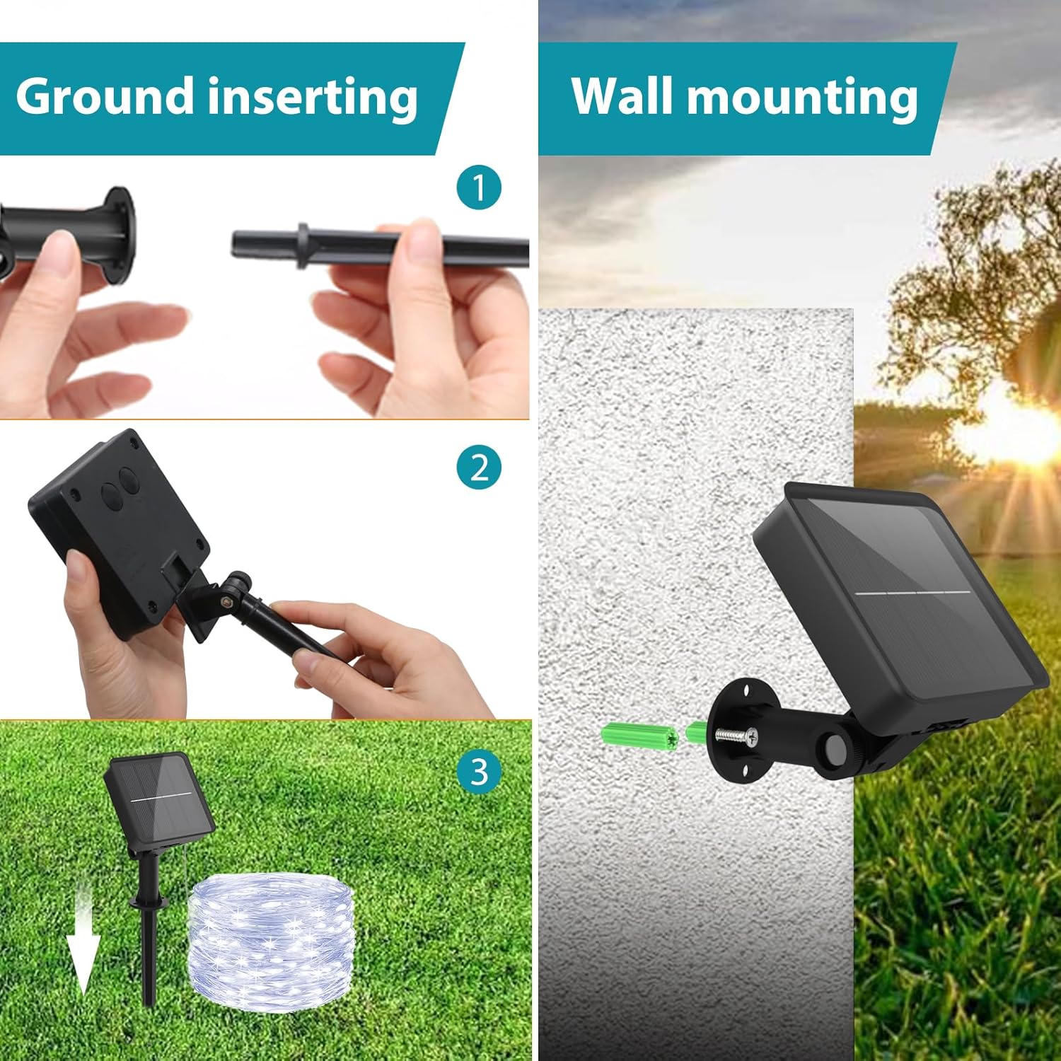 - Easy Installation: The lights can be installed on walls or the ground using stakes, screws or nails.