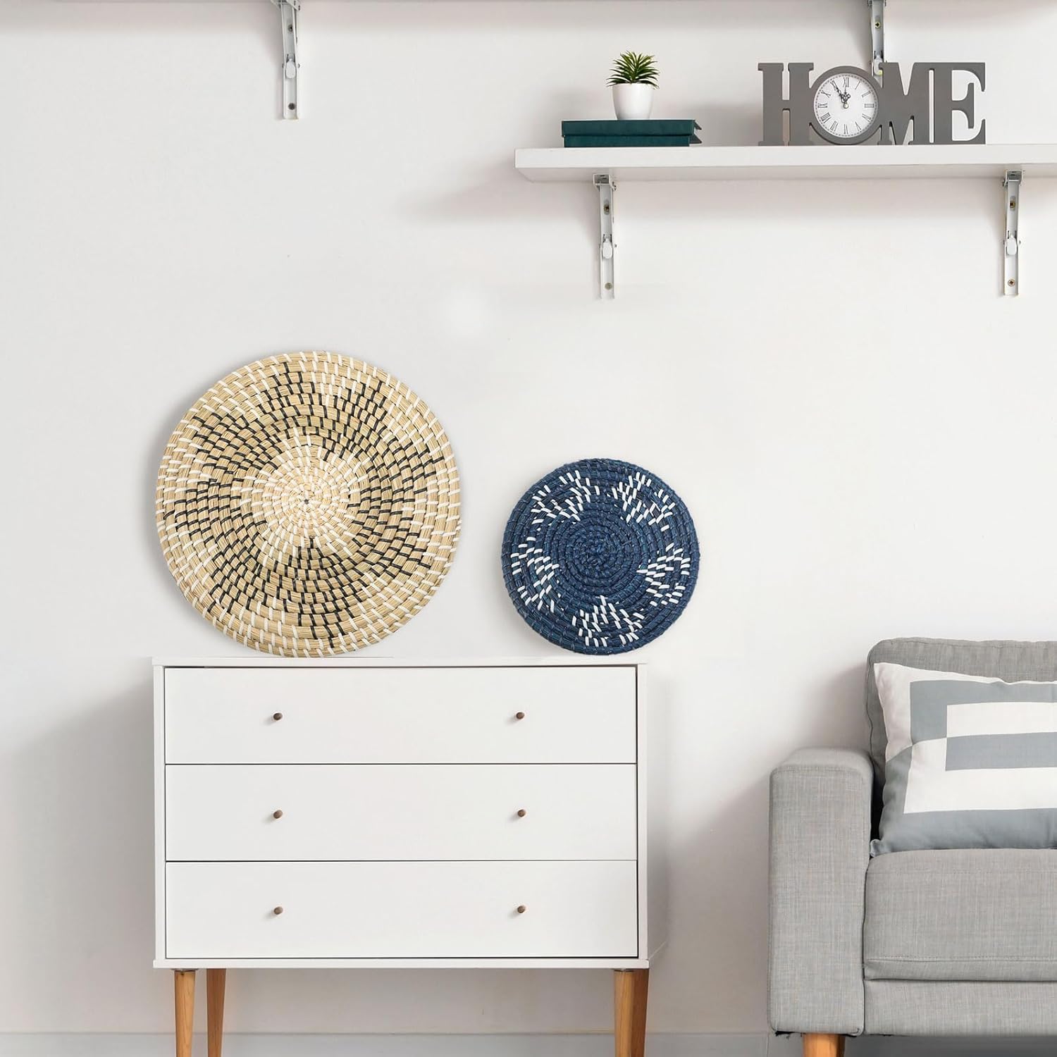 - Delicate Workmanship: woven wall decor is natural and hand woven, made of tan, blue and white plastic cord, neutral colors are easy to match, each seagrass basket is finely handcrafted; When first opened, there will be a natural aroma, which will dissipate in a short time