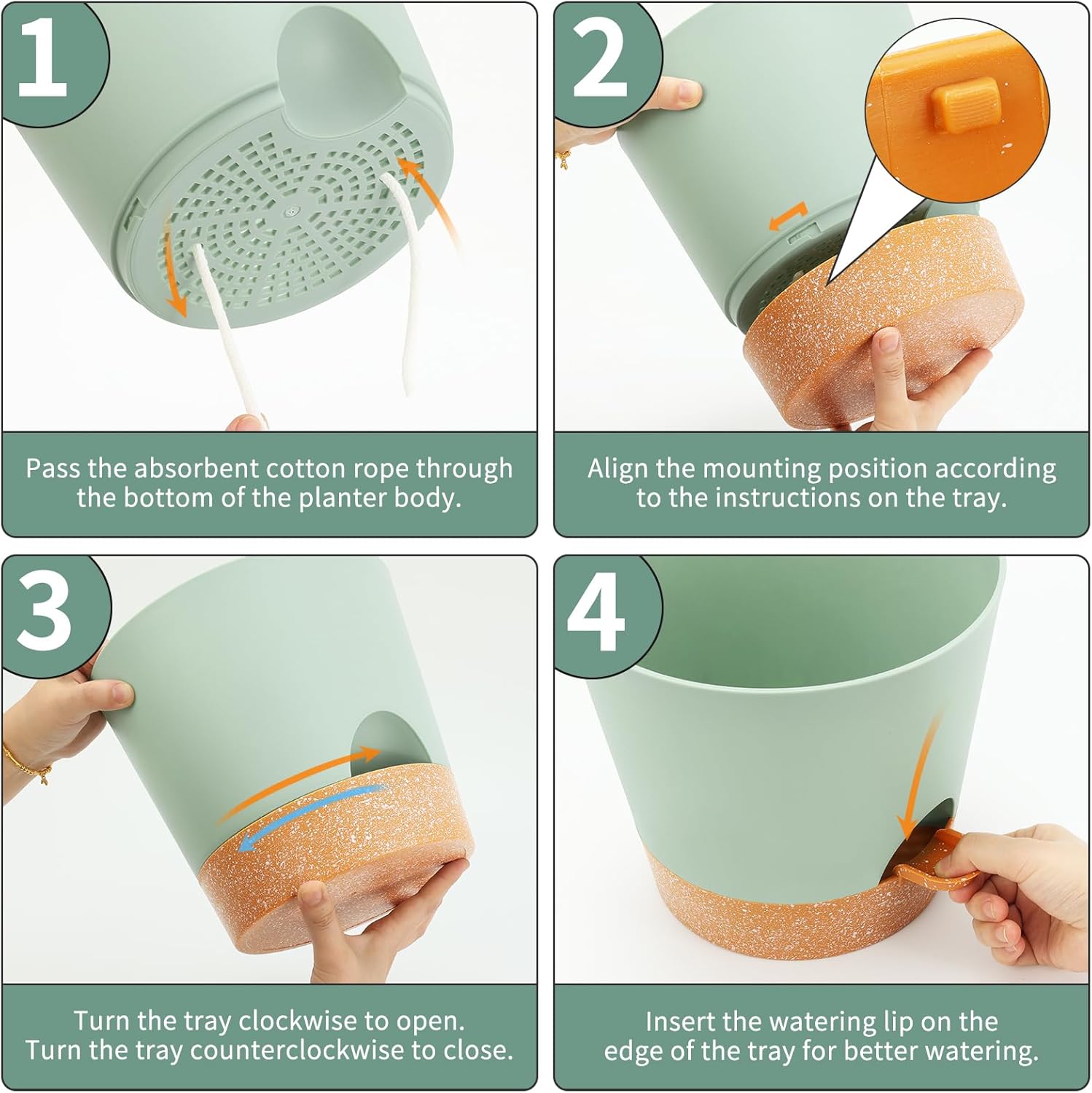 GARDIFE 10/9/8 inch Plant pots, planters for Indoor Plants, self Watering Plant Pot, Flower pots, Green