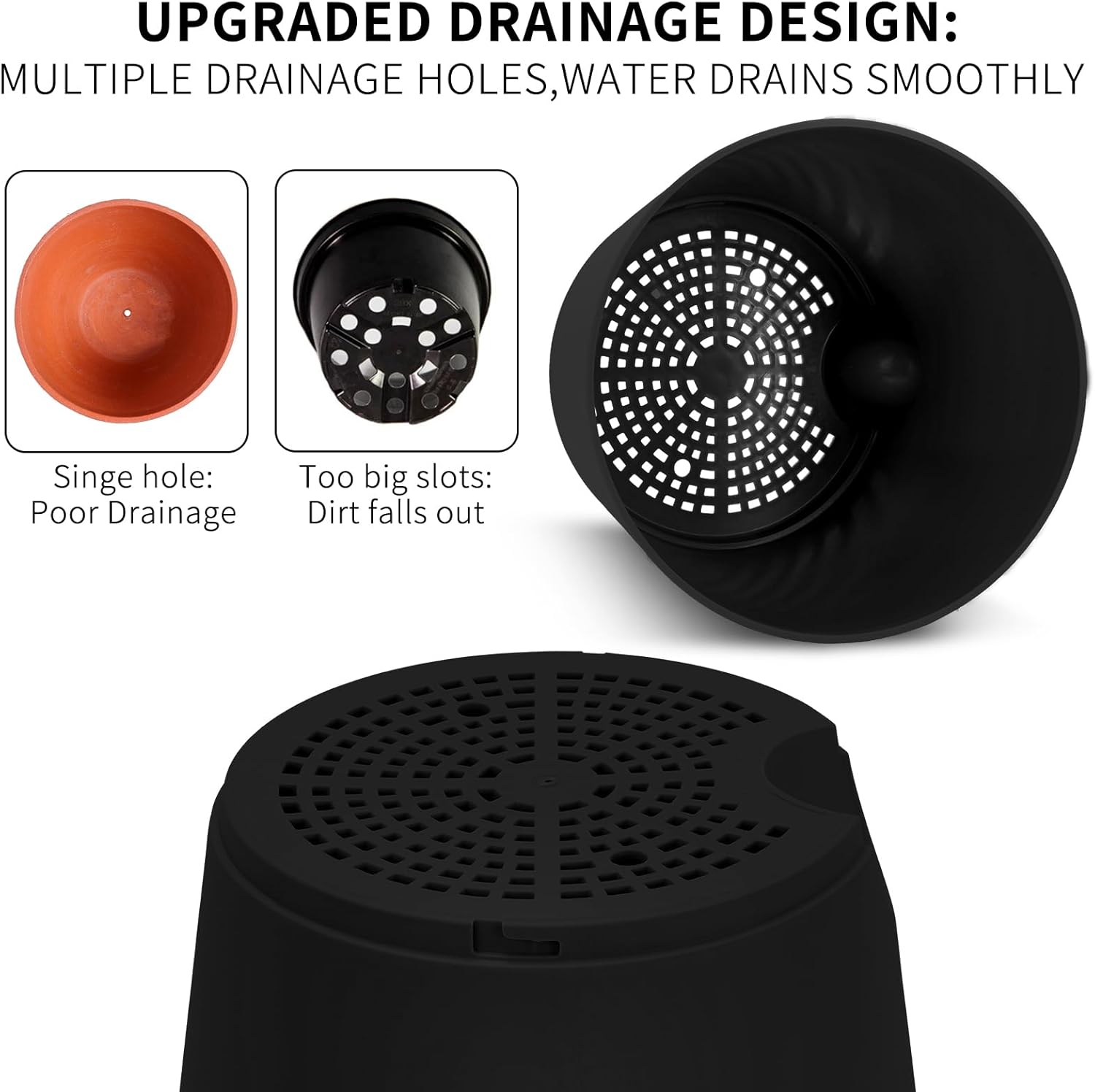 - 【Excellent Drainage Holes】The pot for plants come with multiple drainage holes in the bottom. The holes provide an air circulation system for the plant roots, which greatly reduces the problem of root rot of plants in a closed environment.